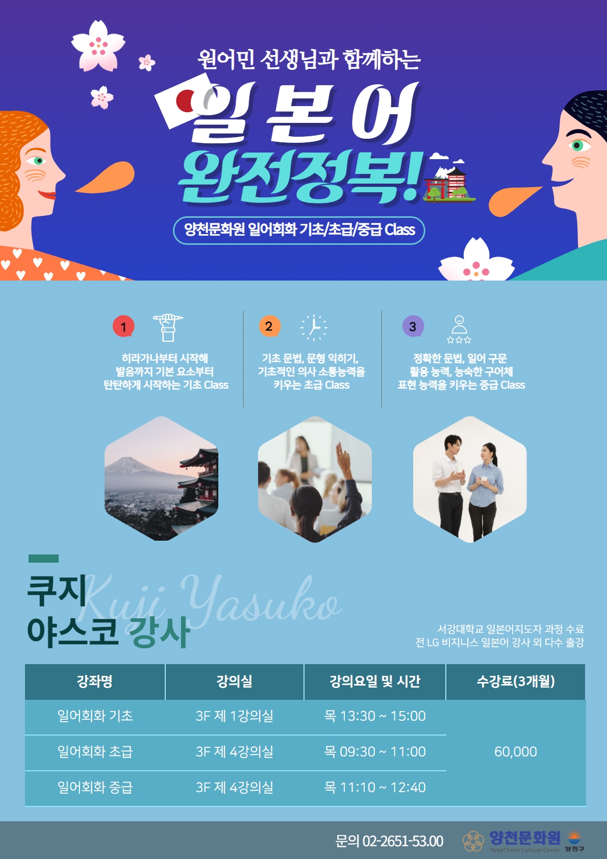 양천문화원 문화대학 성인 어학 강좌에 많은 관심 부탁드립니다.