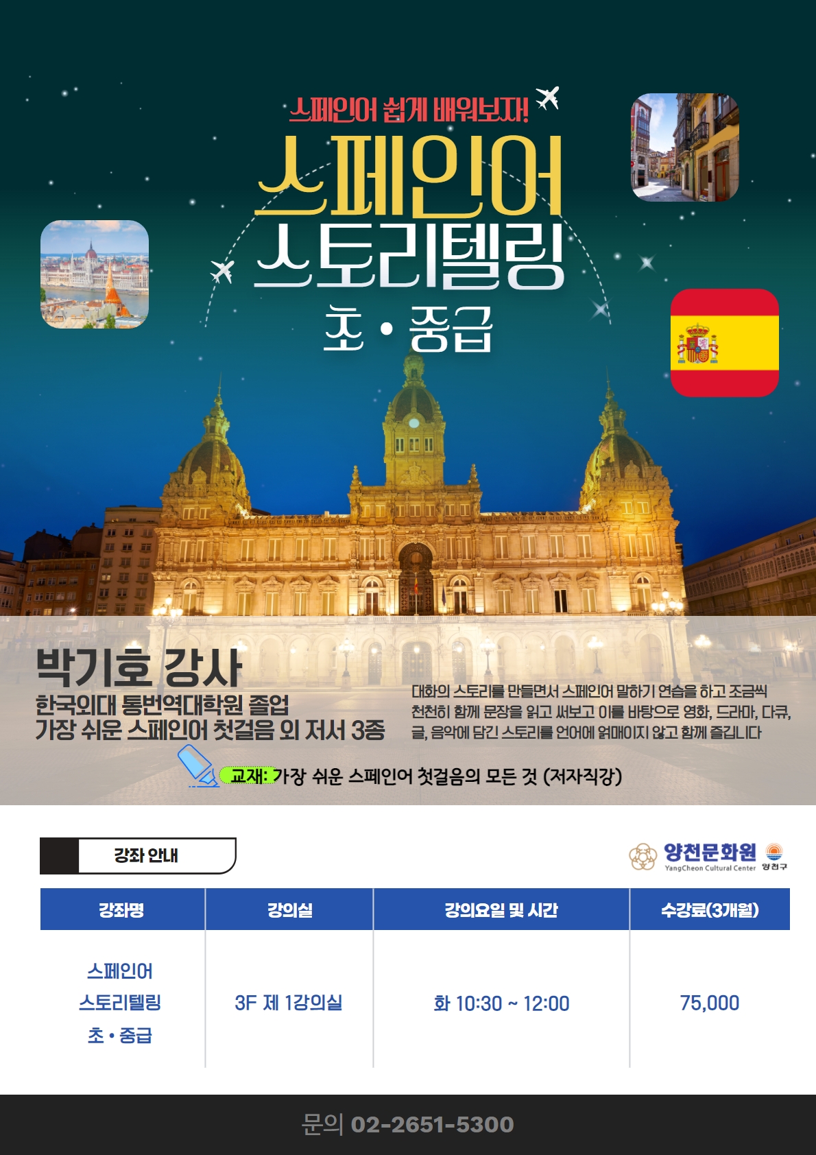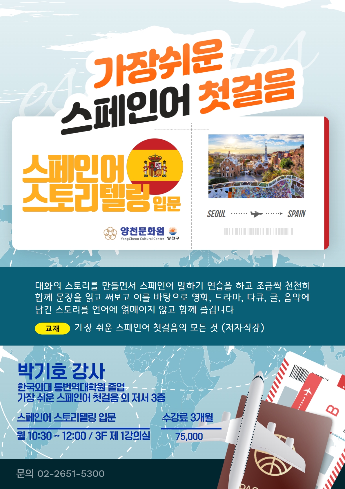 양천문화원 문화대학 성인 어학 강좌인 <스페인어 스토리텔링>과 <일어회화> 강좌를 소개합니다.