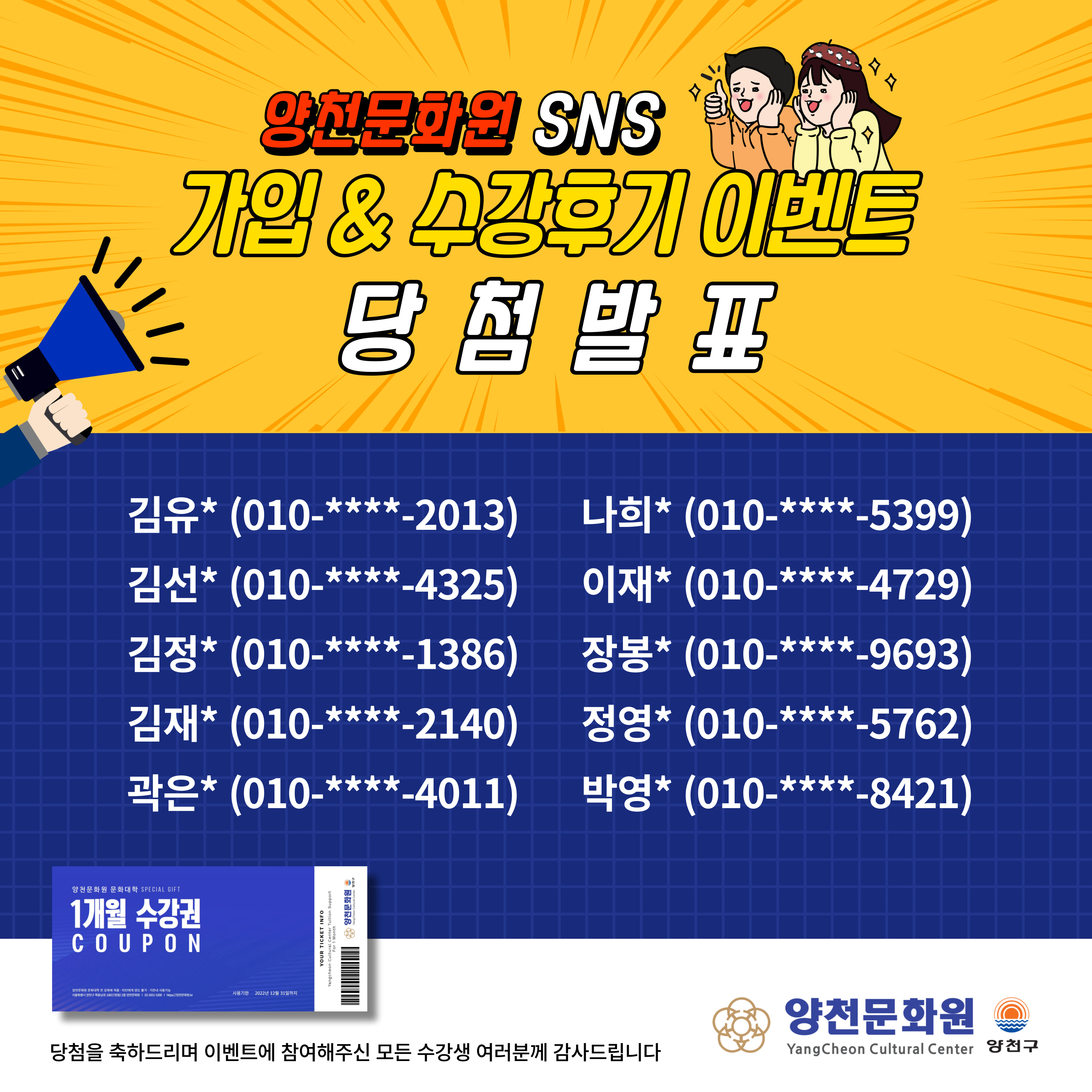 2022년 4월 26일부터 6월 8일까지 진행한 양천문화원 SNS 가입 & 수강후기 이벤트를