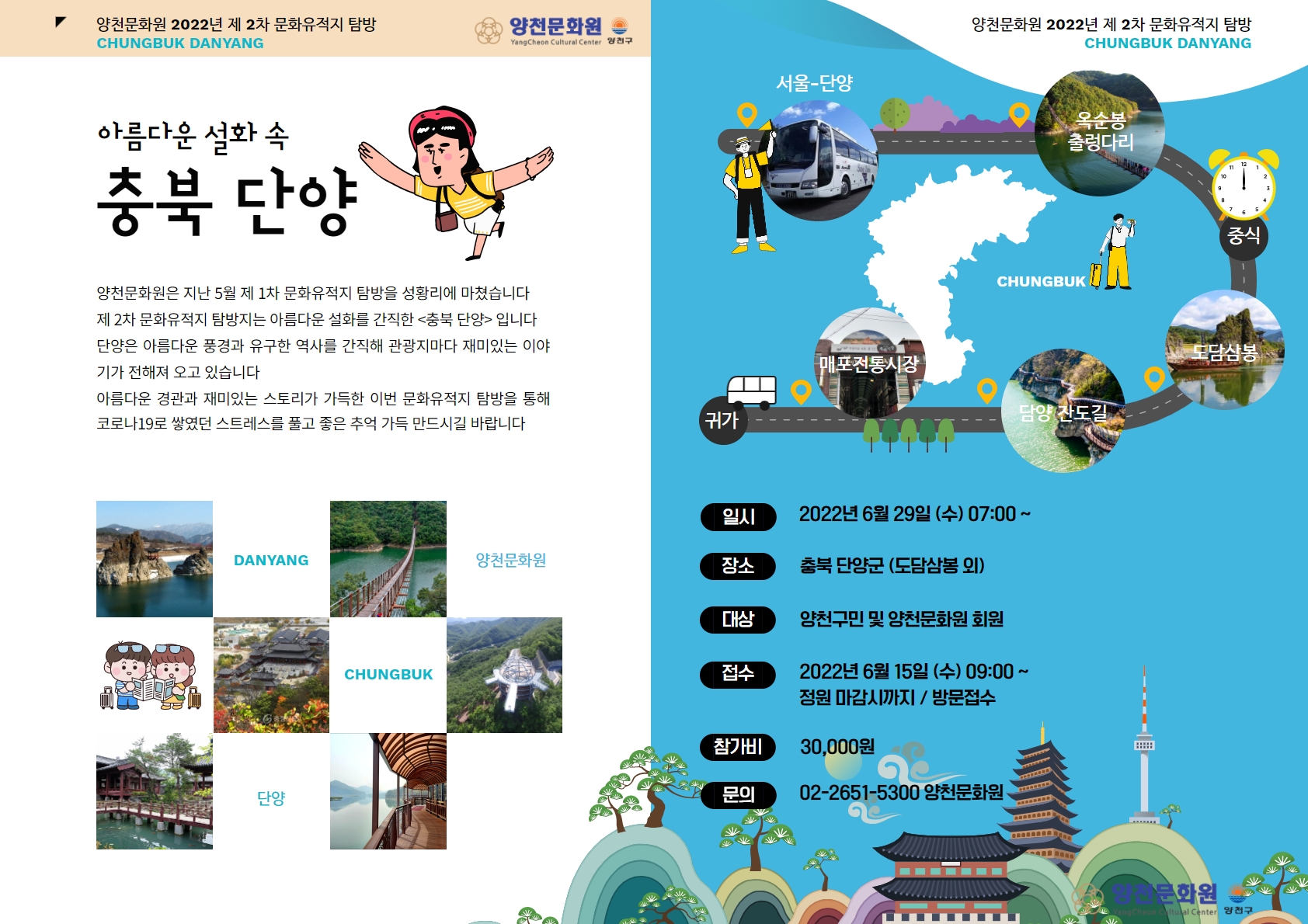 제 2차 문화유적지 탐방지는 아름다운 설화와 유구한 역사를 간직한 <충북 단양>입니다.