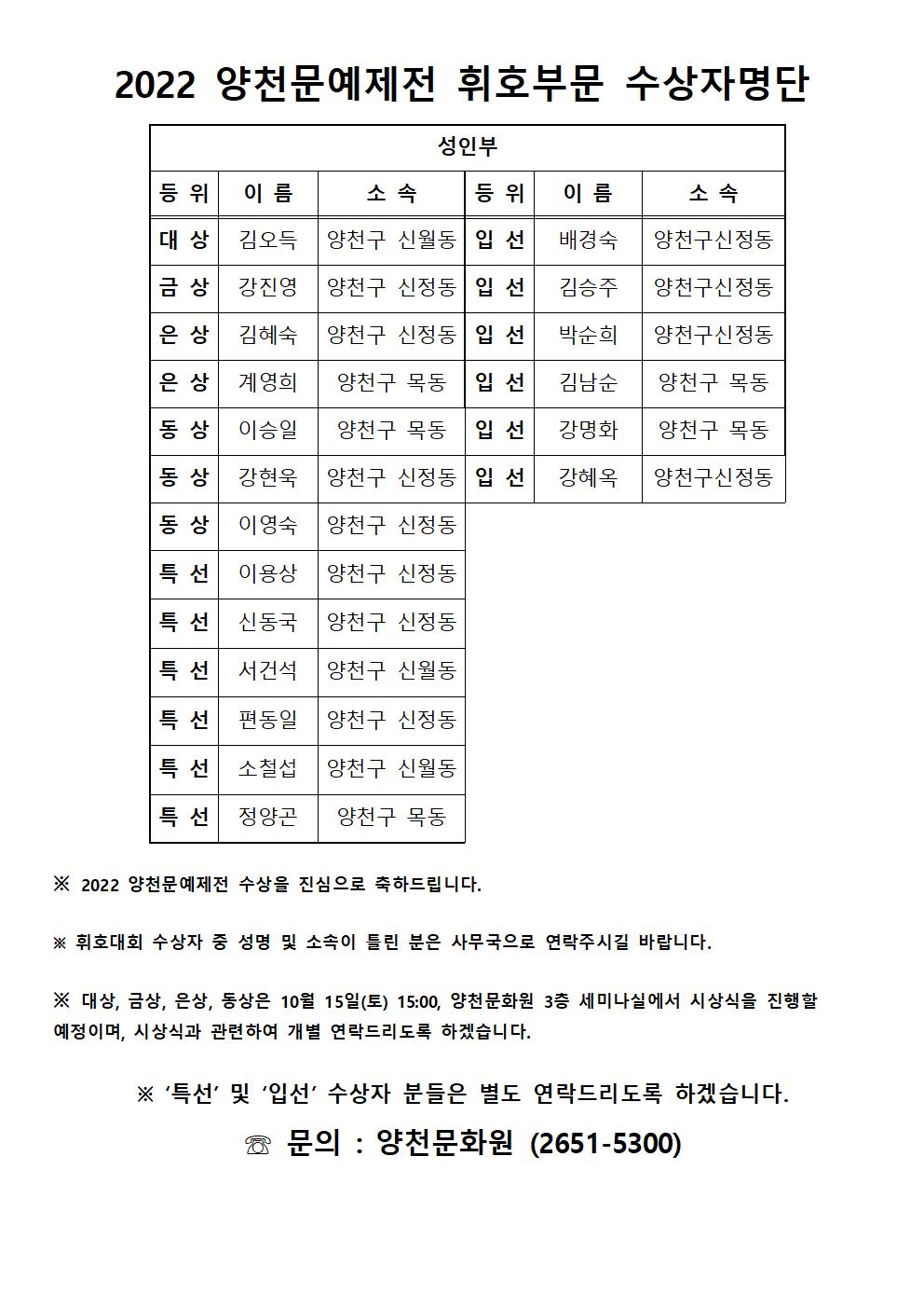 <2022 양천문예제전>에 참여해주신 구민 여러분께 감사드립니다.