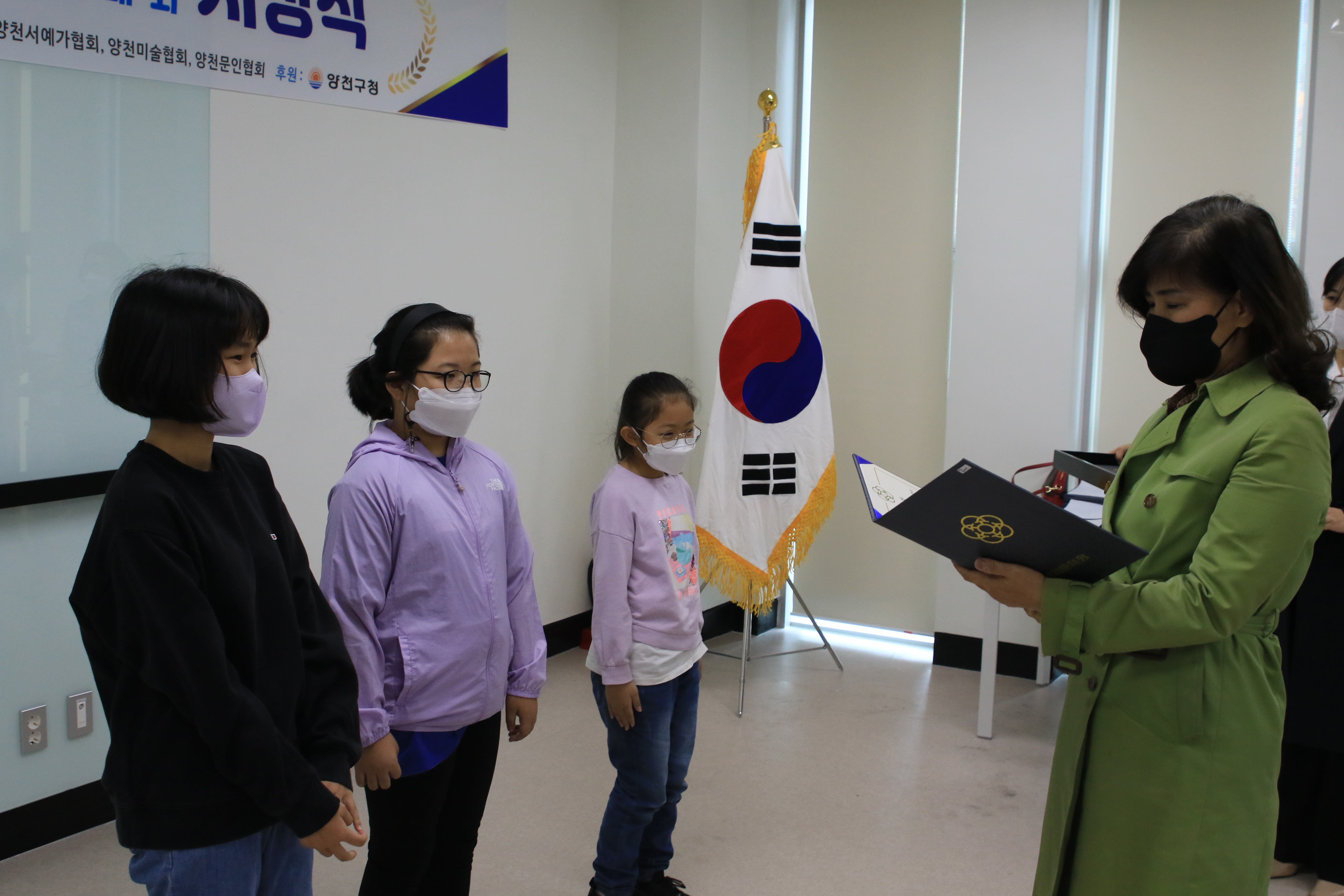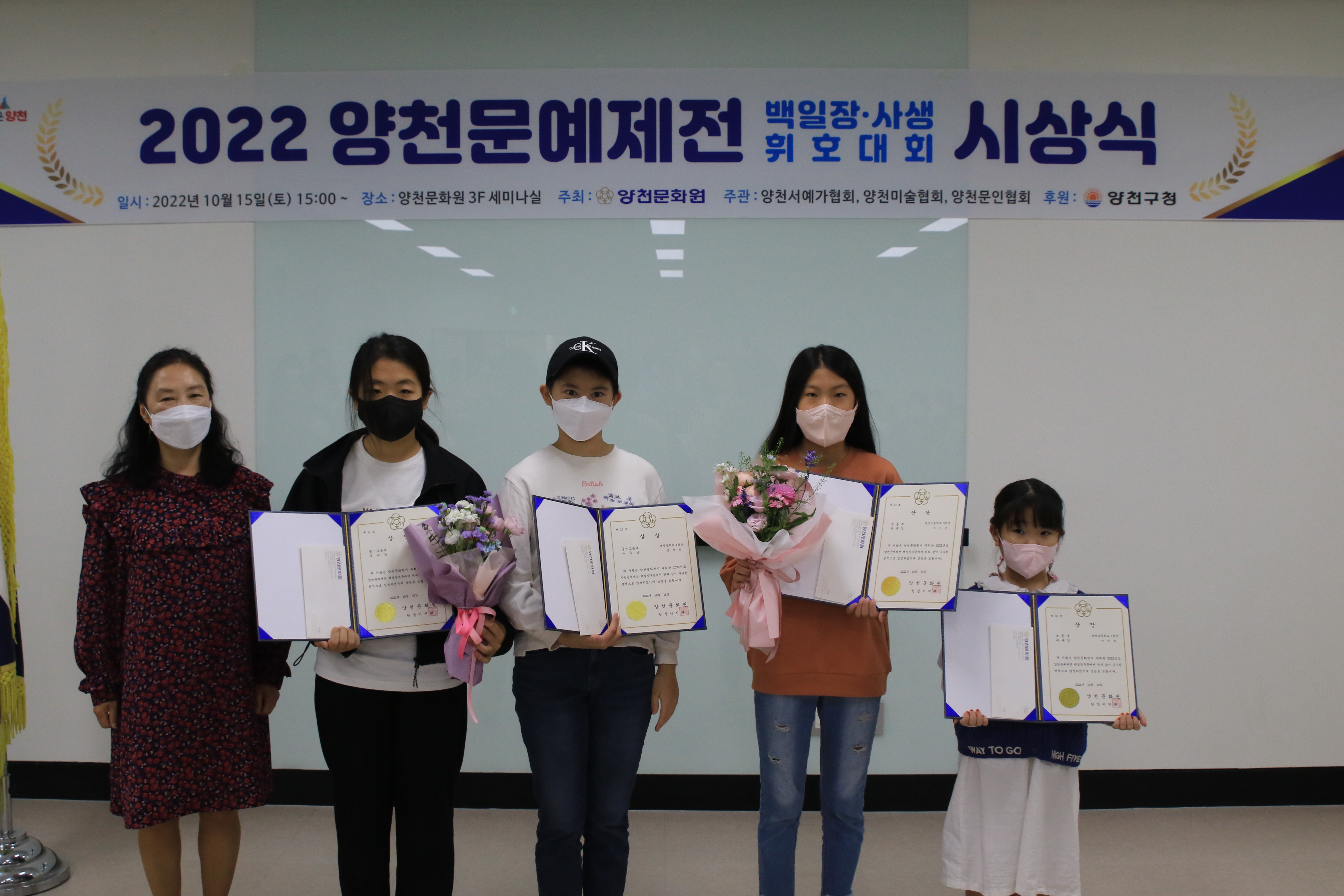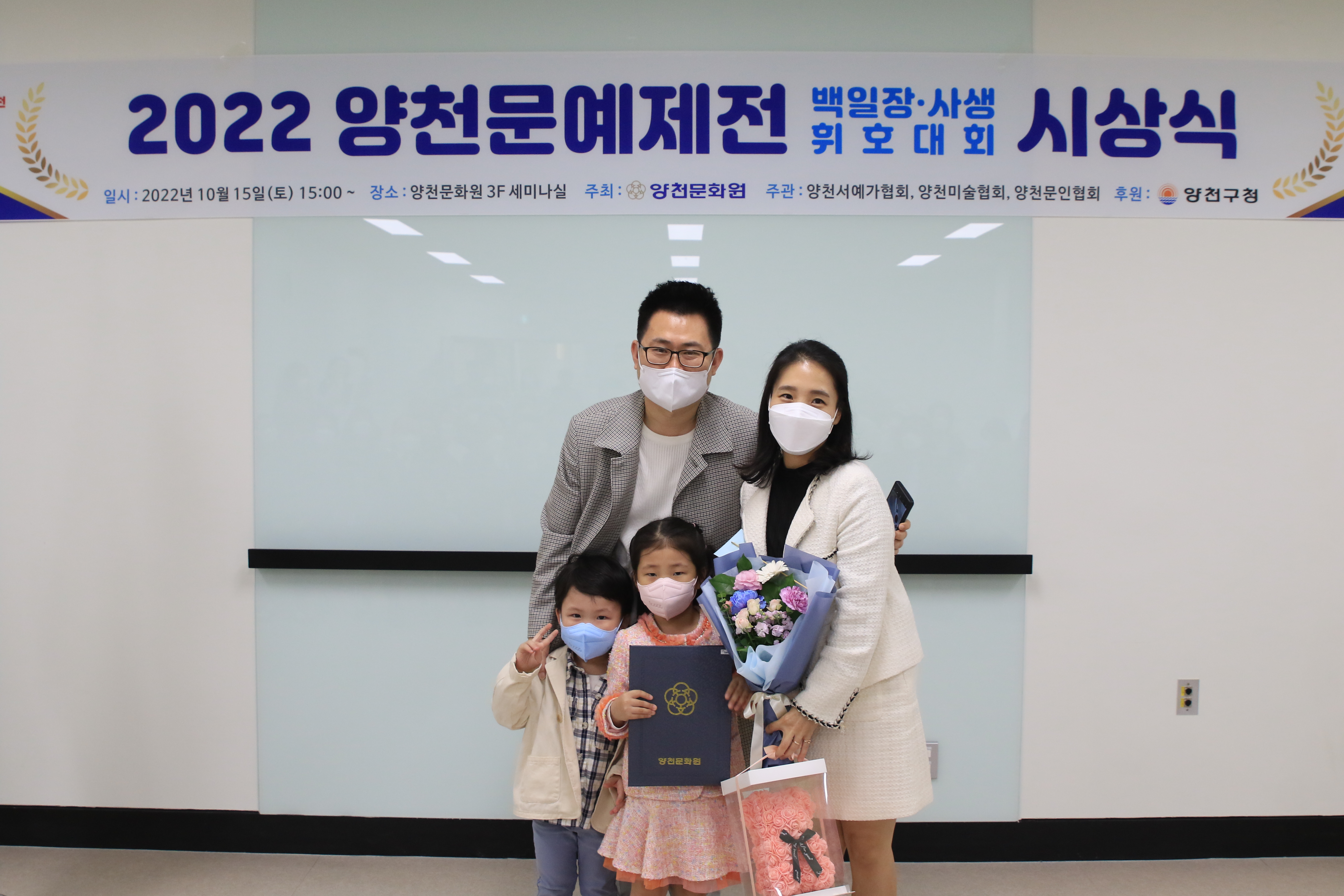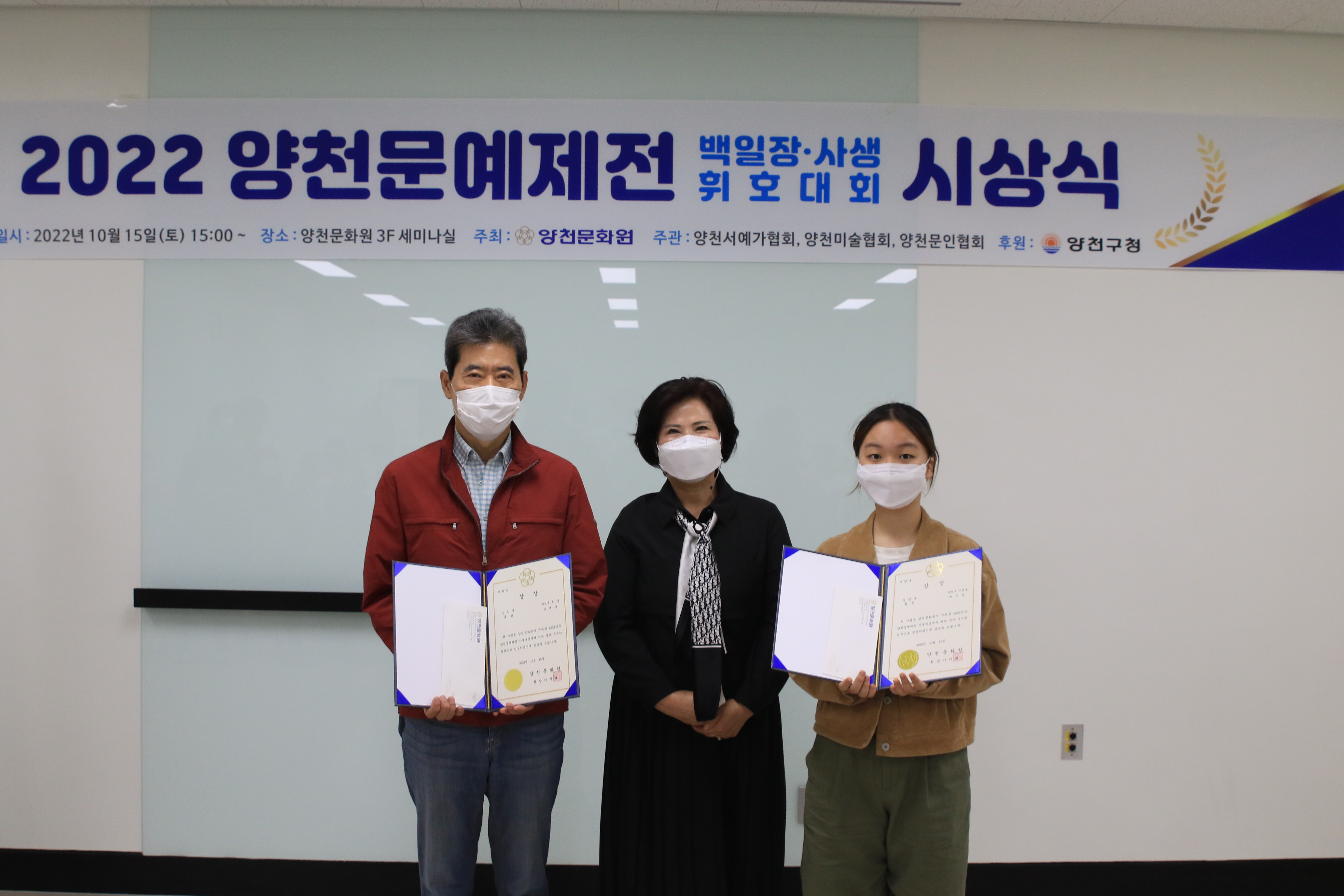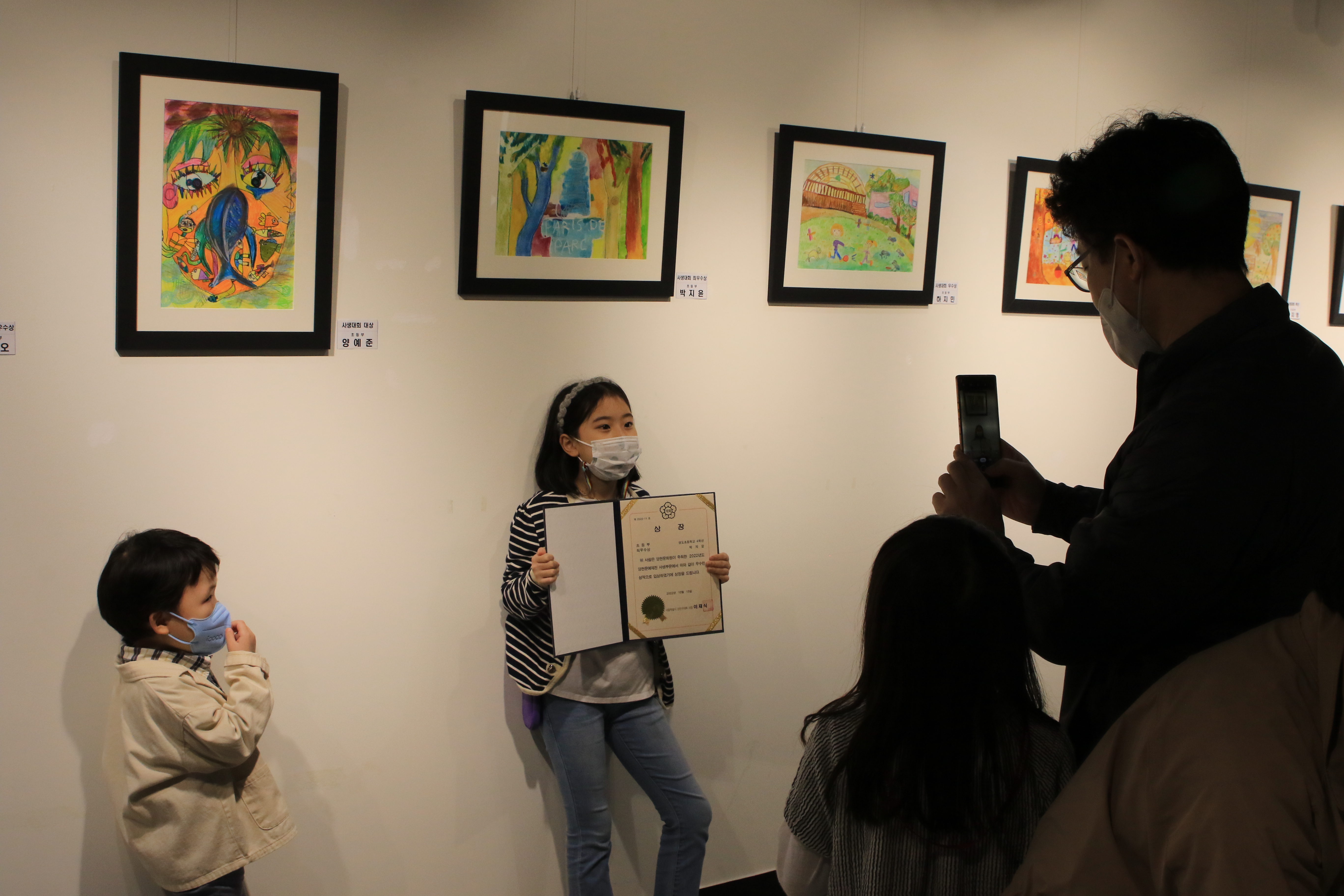 전시회 첫 날이었던 10월 15일(토)에는 개막식과 함께 2022 양천문예제전의 시상식이 열렸습니다. 축하를 위해 함께 나온 가족들의 얼굴엔 함박웃음이 가득했고 아버지, 플라스틱, 코로나19 행복찾기, 양천의 가을 이야기 등의 주제로 완성된 작품들을 감상하는 사람들의 얼굴엔 은은한 미소가 번졌습니다.