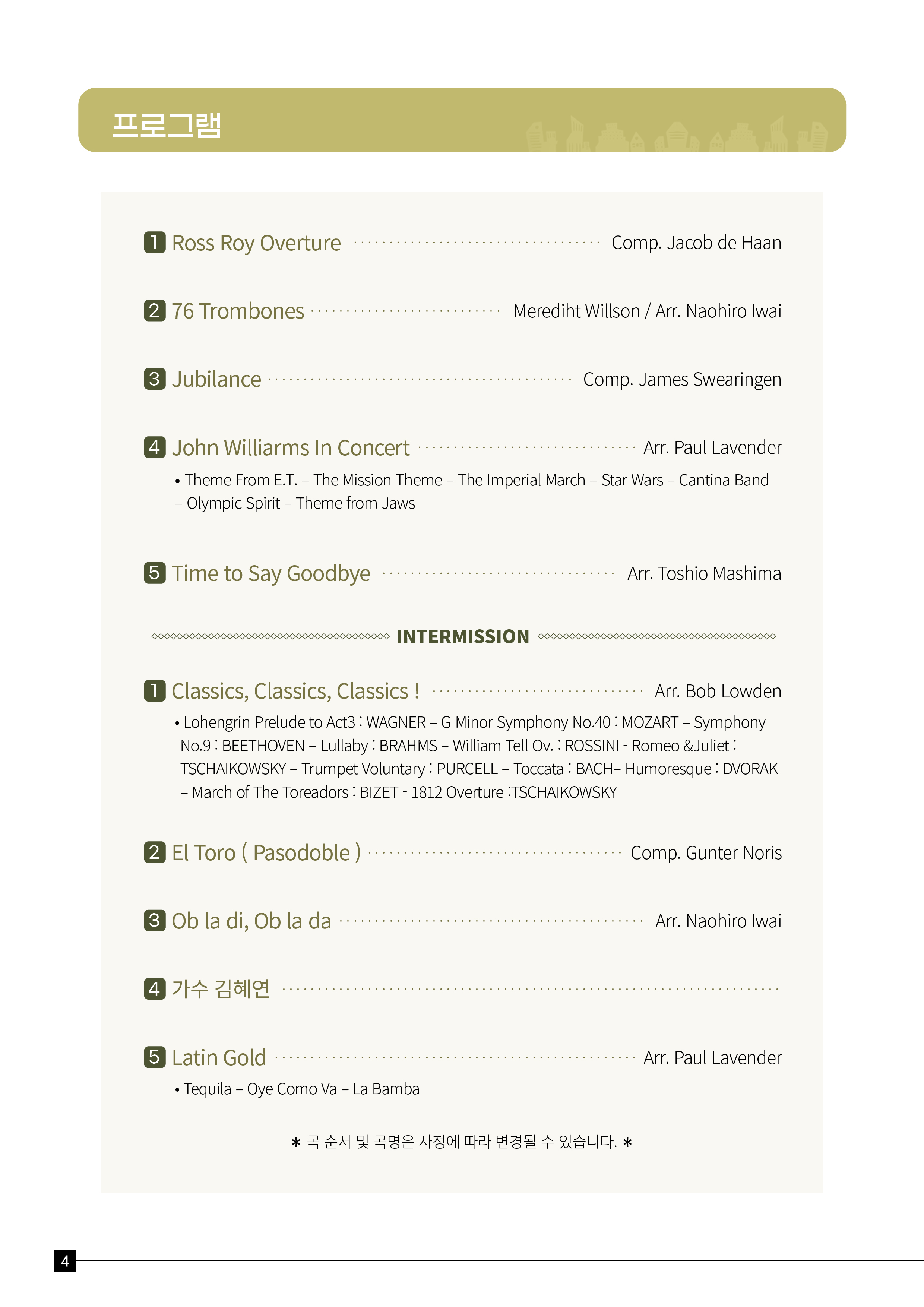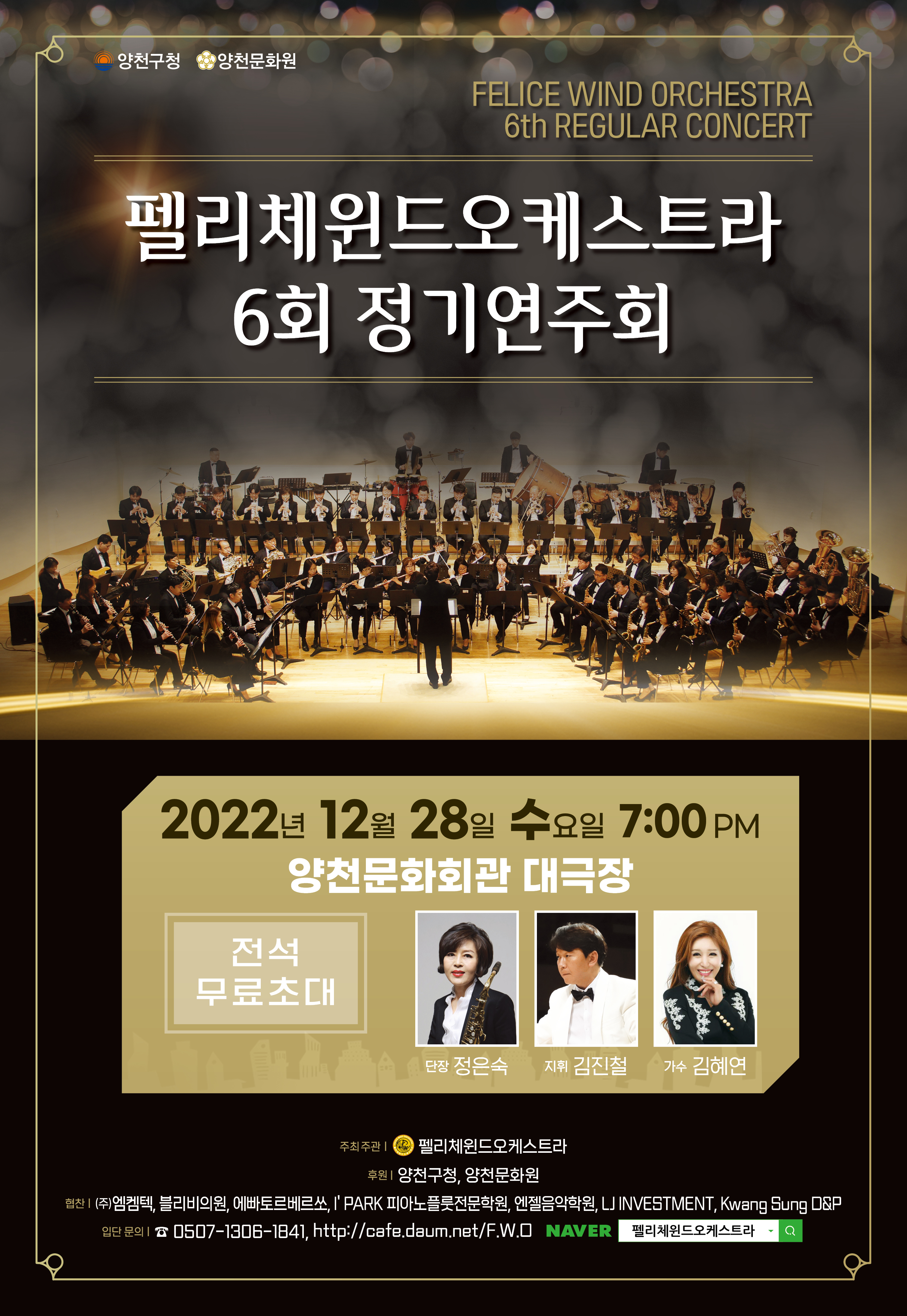 모든 장르를 아우르는 관현악 연주로 한 해의 여운을 되새기고, 다가올 새해에 희망을 선사할 <펠리체윈드오케스트라 제 6회 정기공연>에 많은 관심과 참석 부탁드립니다.