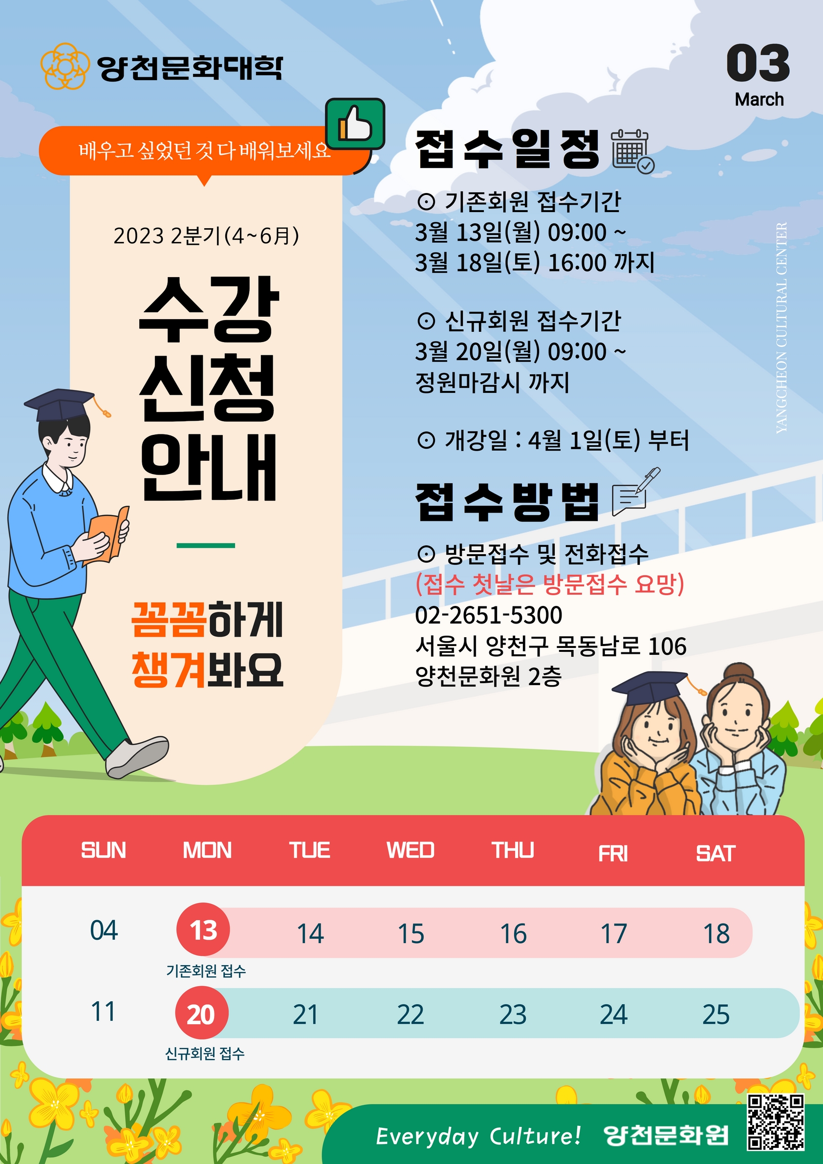 #양천문화원 #양천문화대학 #수강신청 #수업 #봄 #새학기 #강의 #취미 #특기 #배움 #열정 #꽃 #벚꽃 #개나리 #3월 #양천구 #목동 #신정동 #신월동 #갈산공원 #접수 #시니어 #아동 #어린이 #운동 #악기 #음악 #미술 #교양 #전통예술 #노래교실 #어학 #외국어 #요가 #필라테스 #댄스