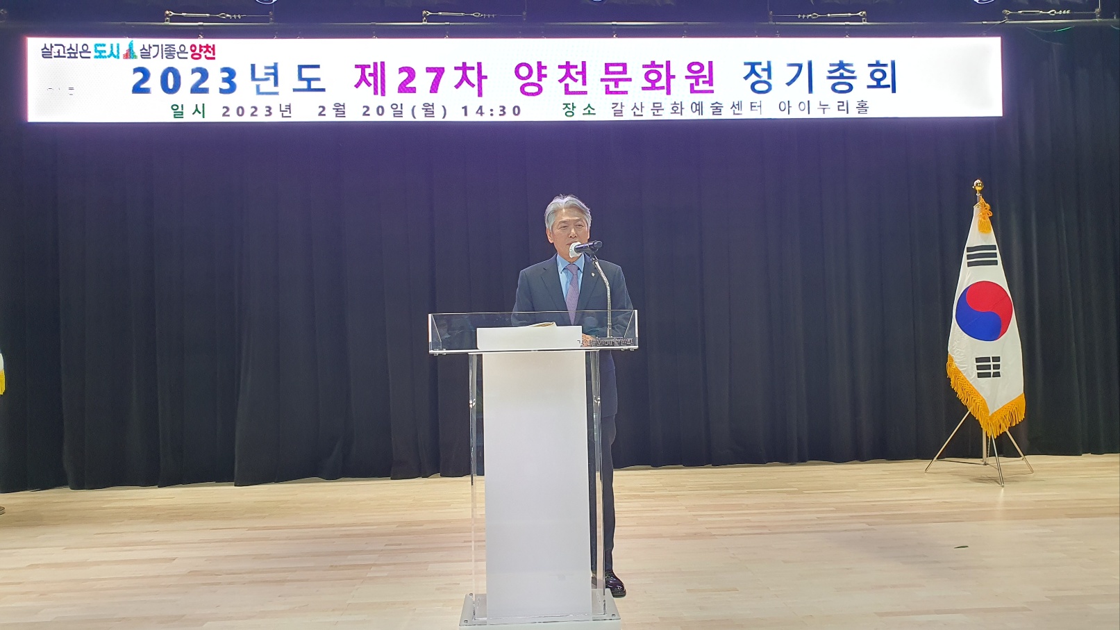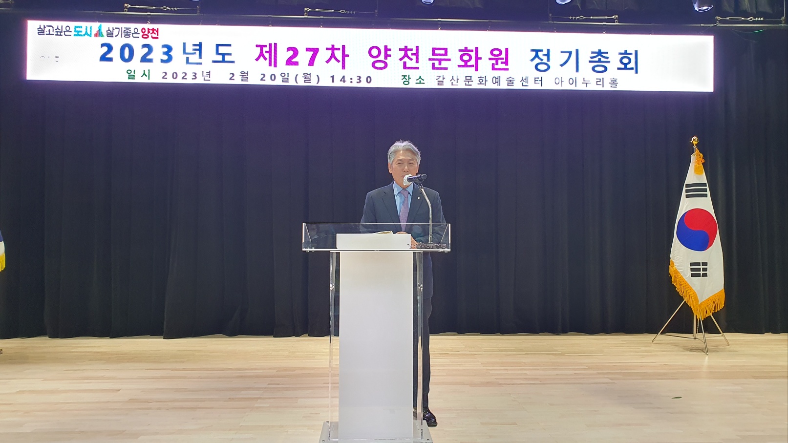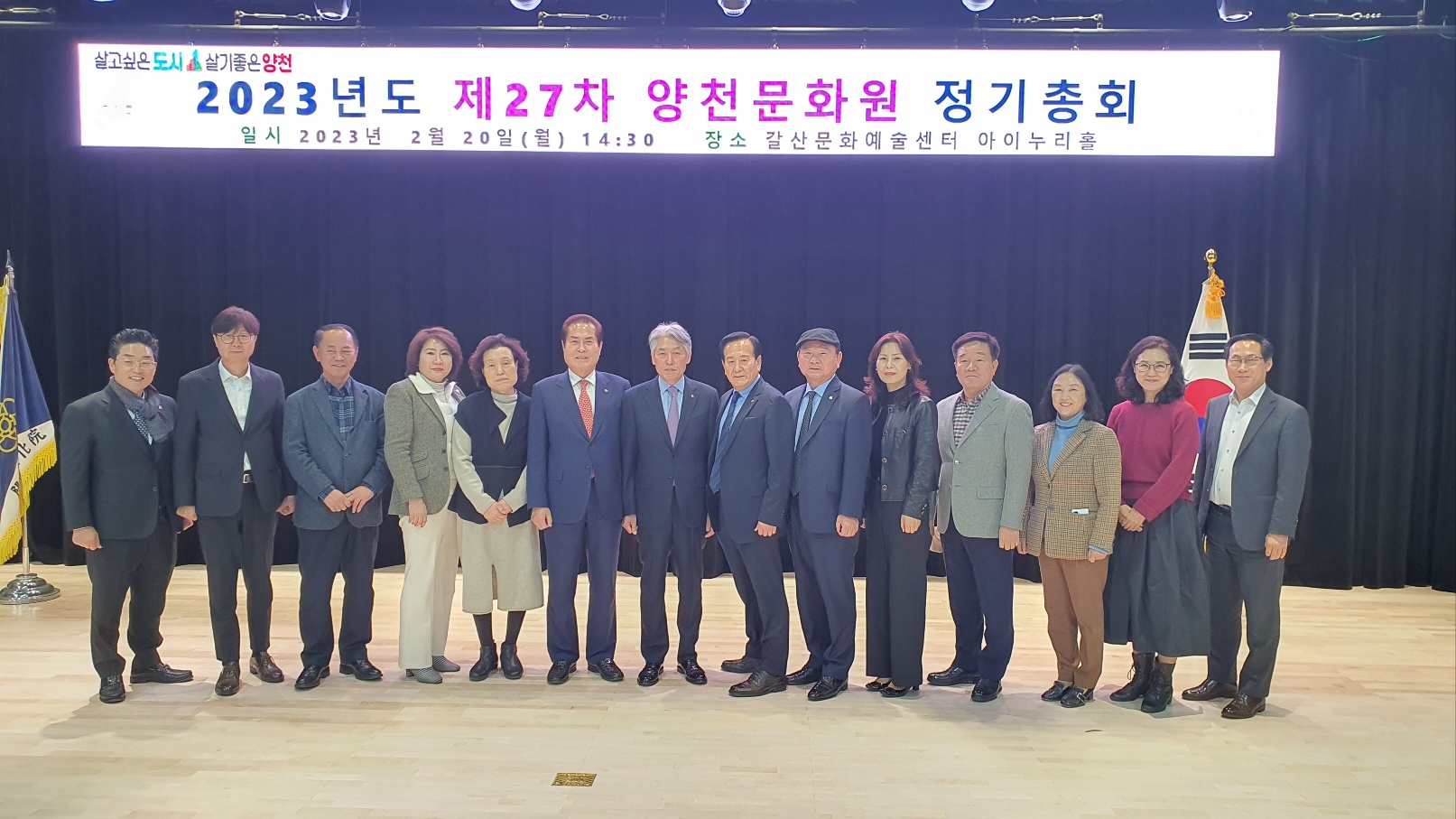 양천문화원 제8대 임원진과 문화원 회원 여러분의 참석하에 지난 2월 20일(월) 오후 2시 30분, 원사 4층 아이누리홀에서 「2023년도 제27차 정기총회」가 개최되었습니다.