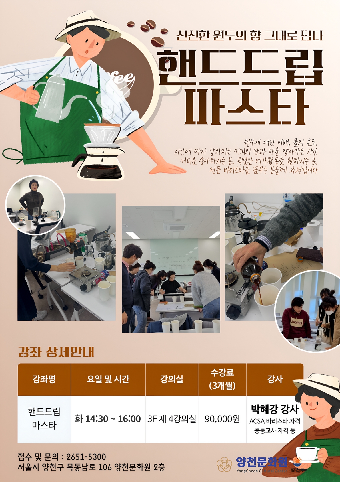 문화대학 <핸드드립 마스타> 수업 시간이 다음과 같이 변경되어 4월부터 적용될 예정이오니 참고하여 주시기 바랍니다.