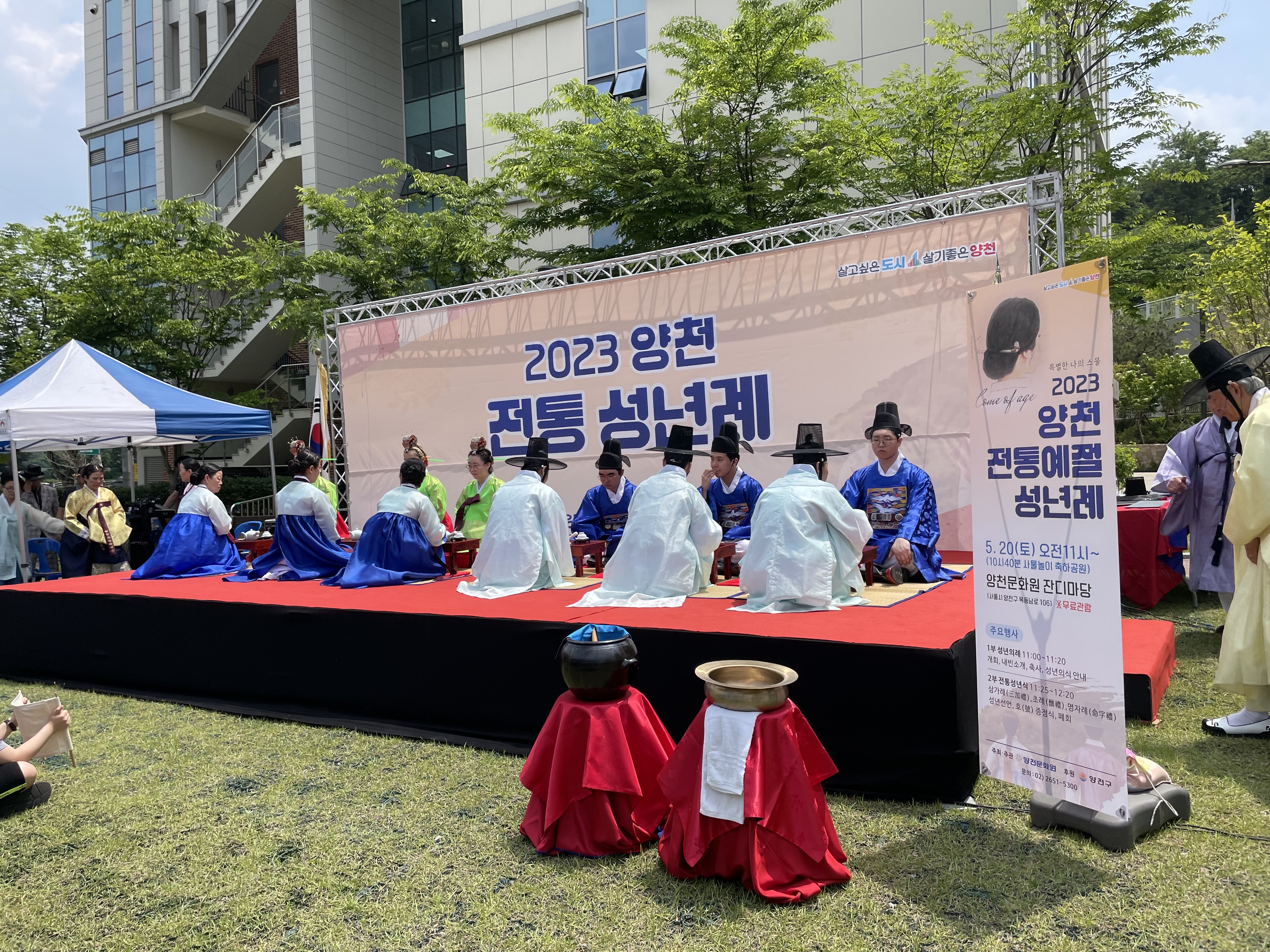 오늘 양천문화원 잔디마당에서 열린 2023 양천 전통 성년례 행사 현장입니다.
