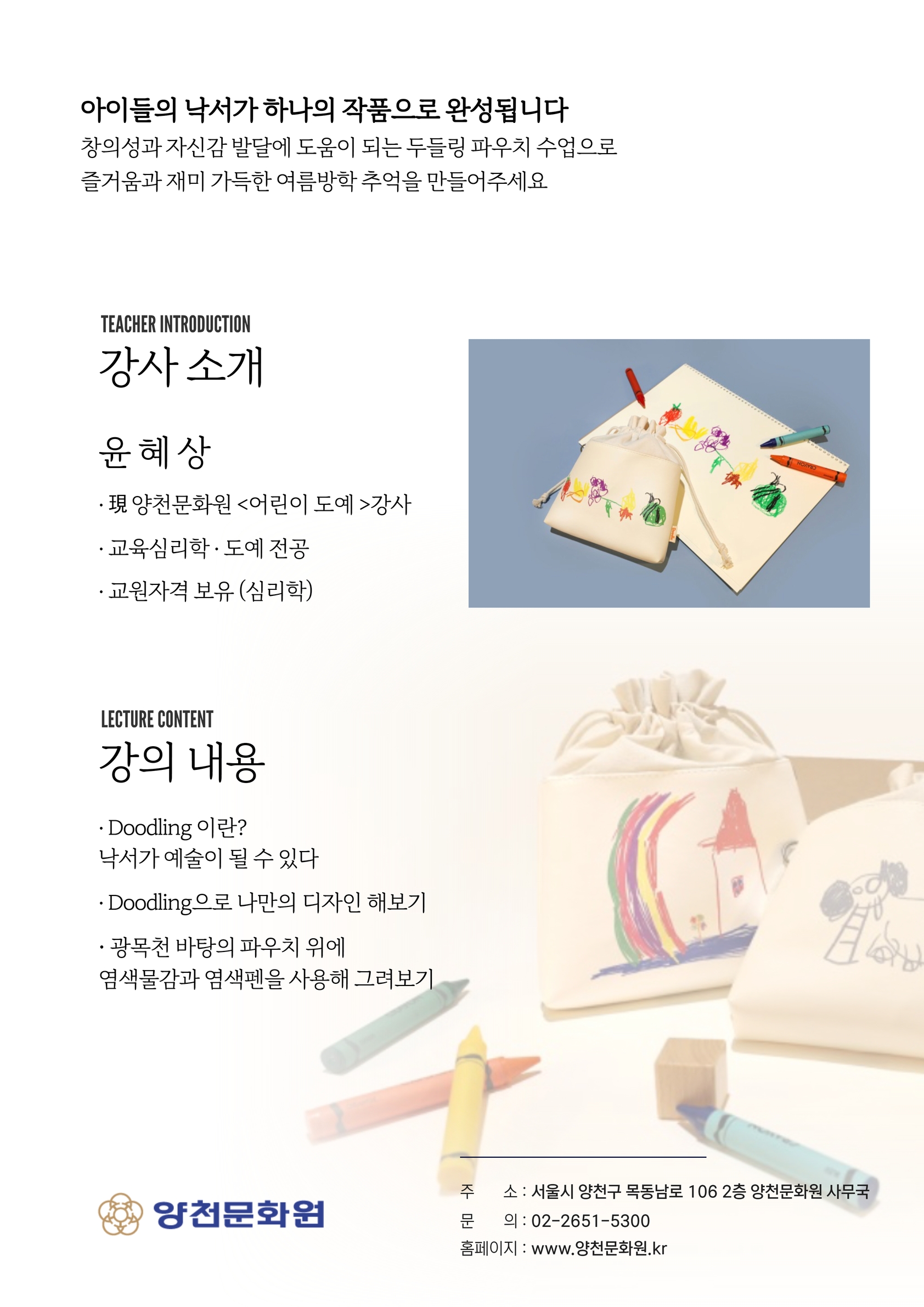 2023 어린이 여름방학 특강 Doodling 파우치 (부제 ‘낙서가 예술이 된다’) 수강생 모집