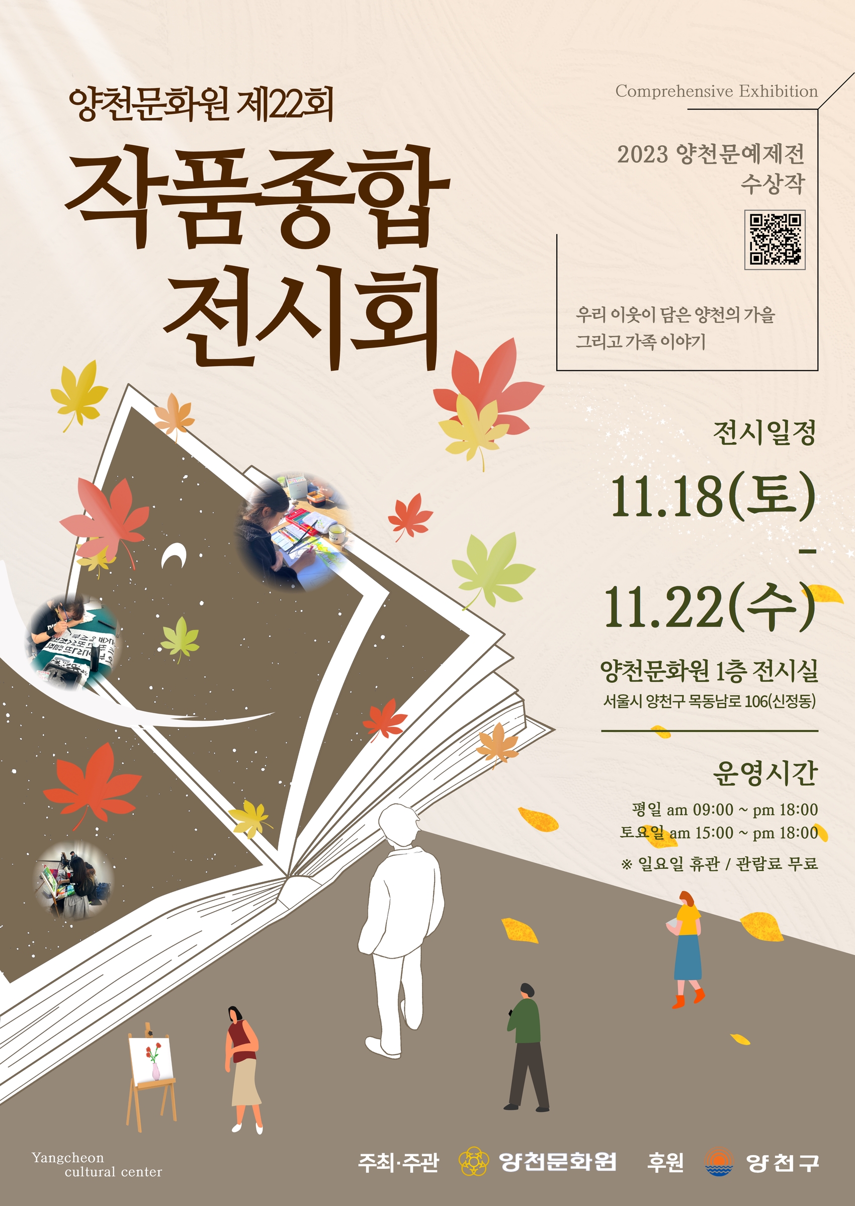 오는 11월 18일(토)부터 22일(수)까지 양천문화원 1층 전시실에서 『2023 제22회 작품종합전시회』를 개최합니다.