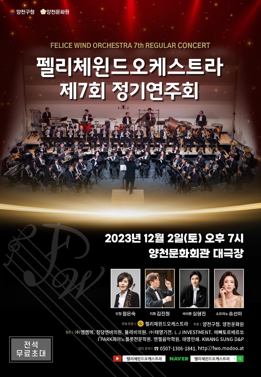 양천문화원 서포터즈인 펠리체윈드오케스트라(단장 정은숙)의 제7회 정기연주회를 안내드립니다.