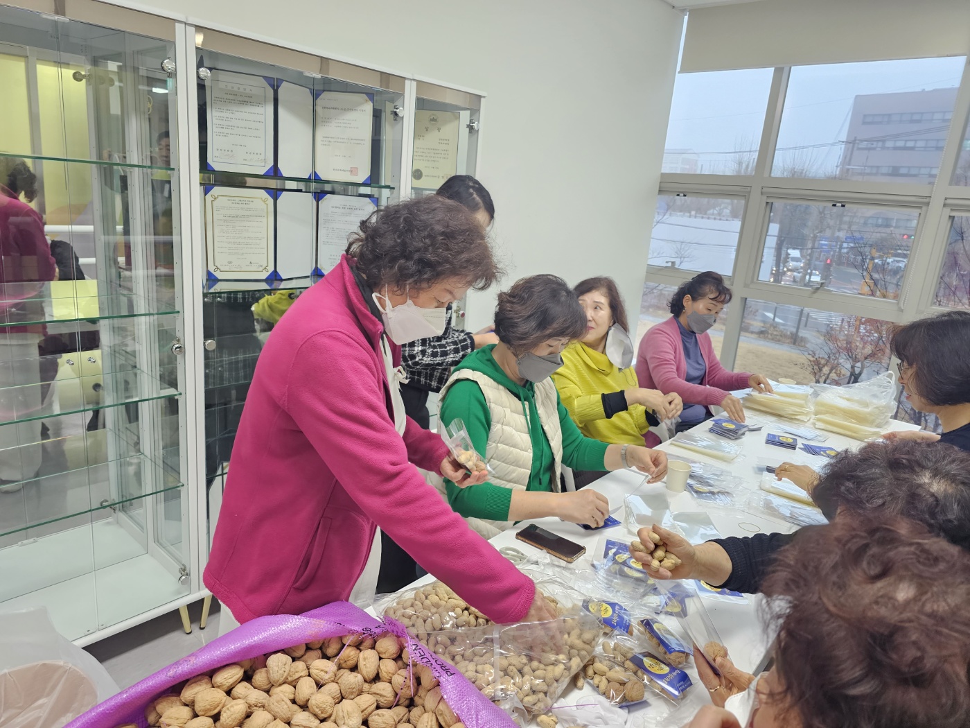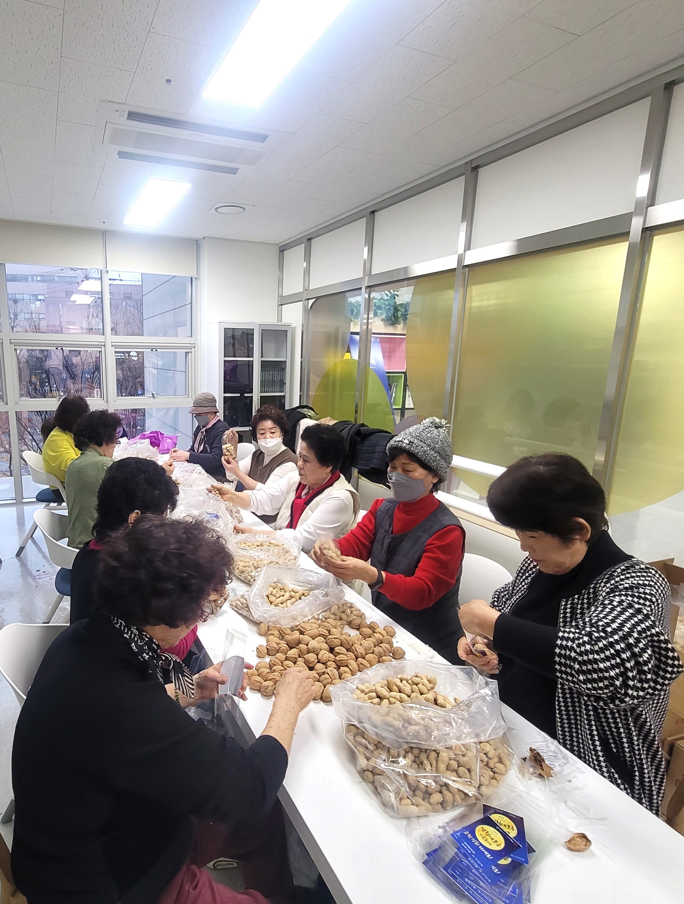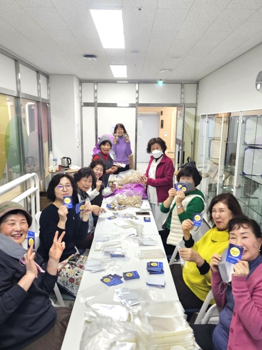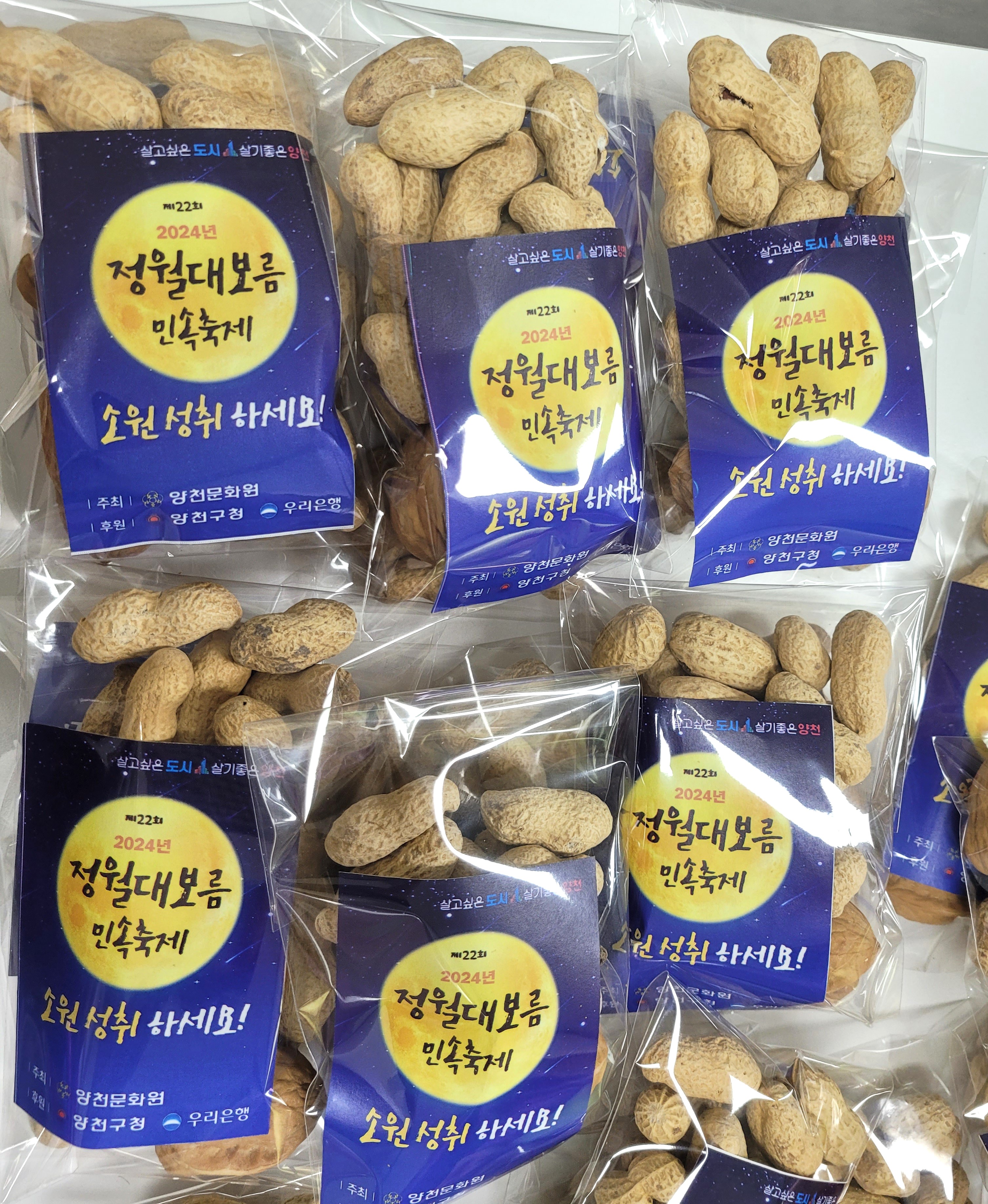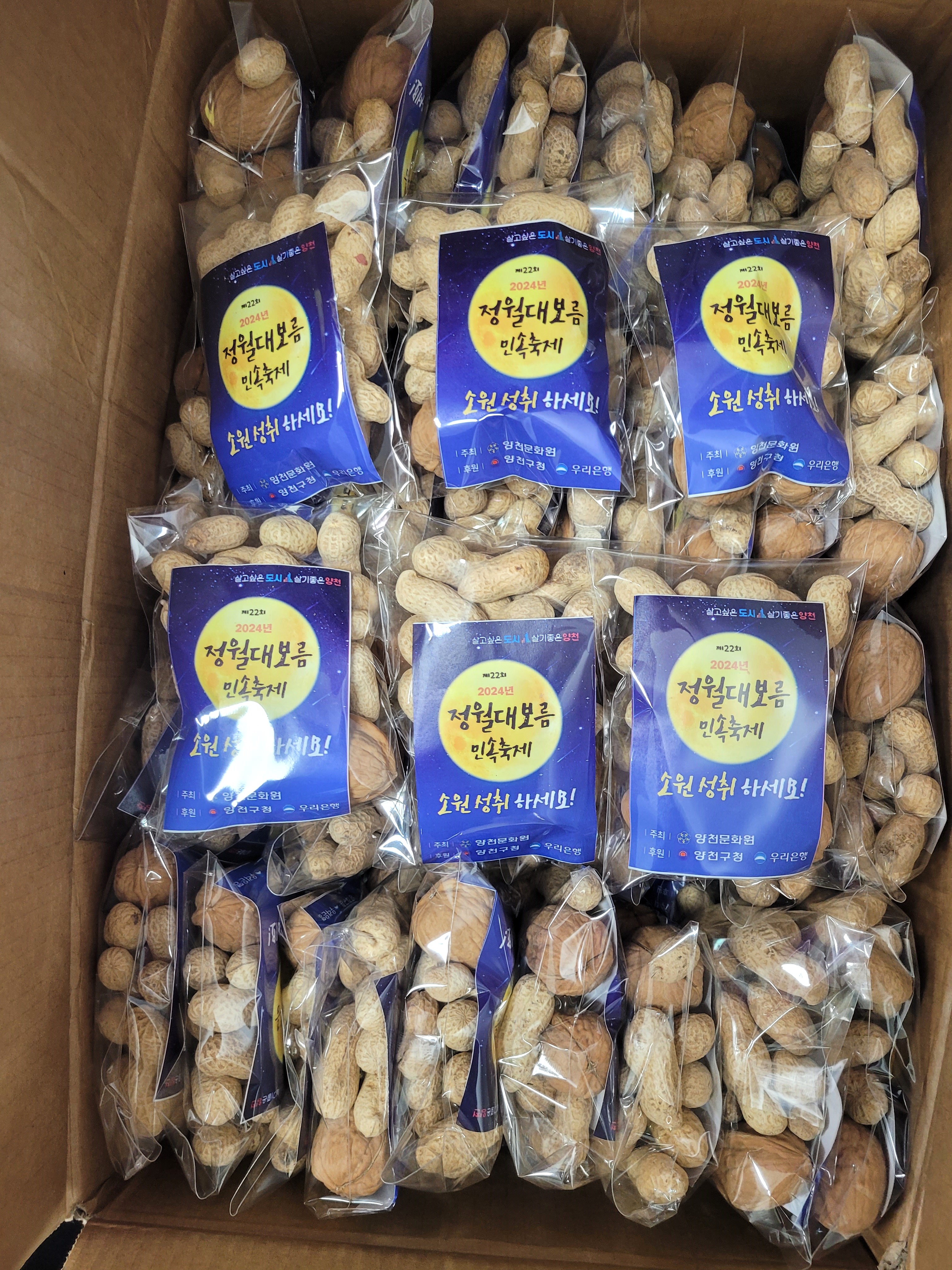 축제에서 나눠드릴 부럼을 포장하였습니다. 부럼을 포장하는 손길에서 정성이 가득 느껴집니다.