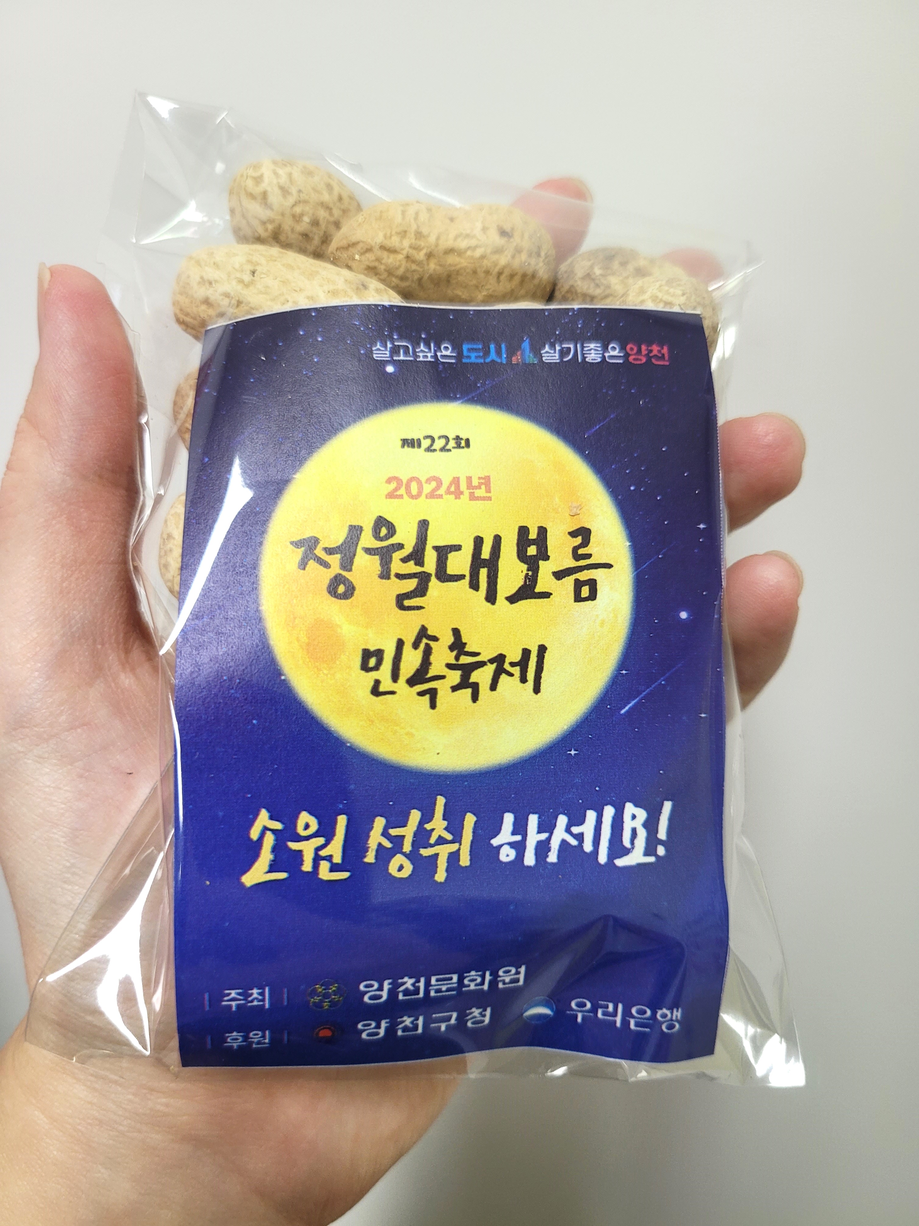 축제에서 나눠드릴 부럼을 포장하였습니다. 부럼을 포장하는 손길에서 정성이 가득 느껴집니다.