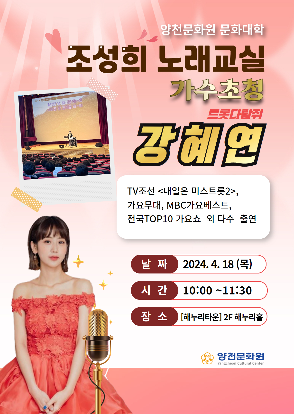 #양천문화원 #노래교실 #조성희 #가수초청 #미스트롯2 #트롯다람쥐 #강혜연 #해누리타운 #해누리홀 #양천구 #가요 #조성희노래교실 #양천문화대학 #수강신청 #노래공연