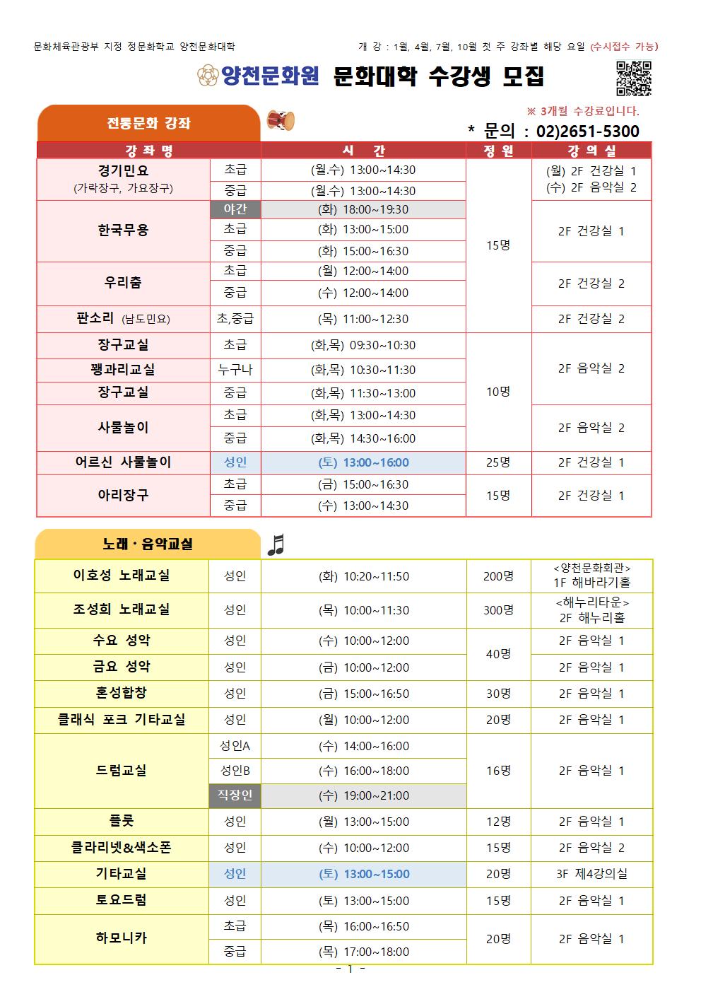 | 2025년 1분기 문화대학 종합강좌 안내 (신규강좌 포함) (0) | 2025.01.20 |
