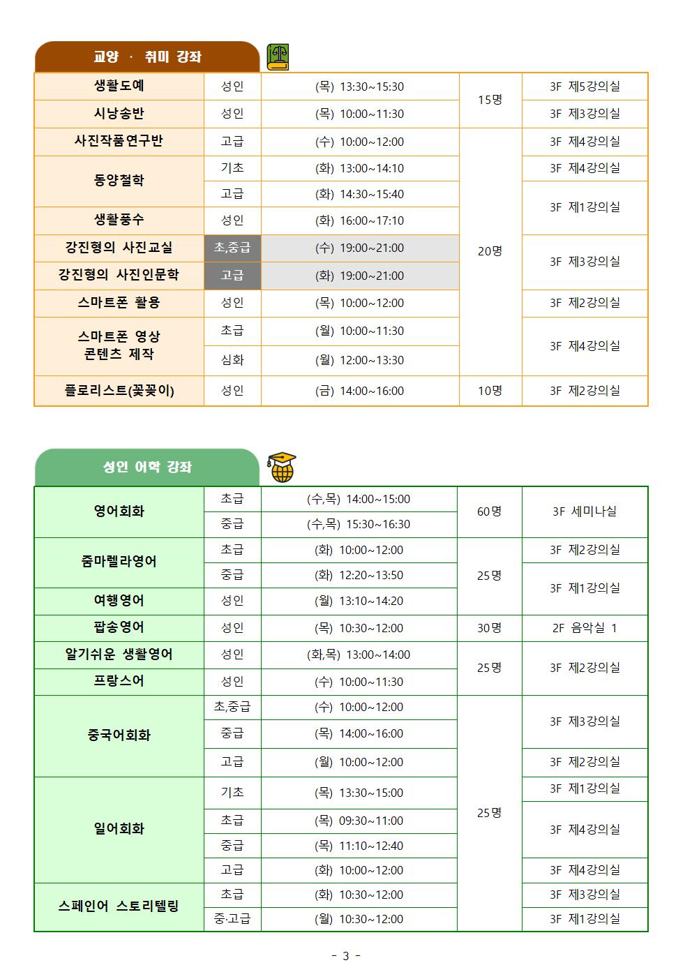 | 2025년 2분기 문화대학 종합강좌 안내 (신규강좌 포함) (0) | 2025.04.21 |