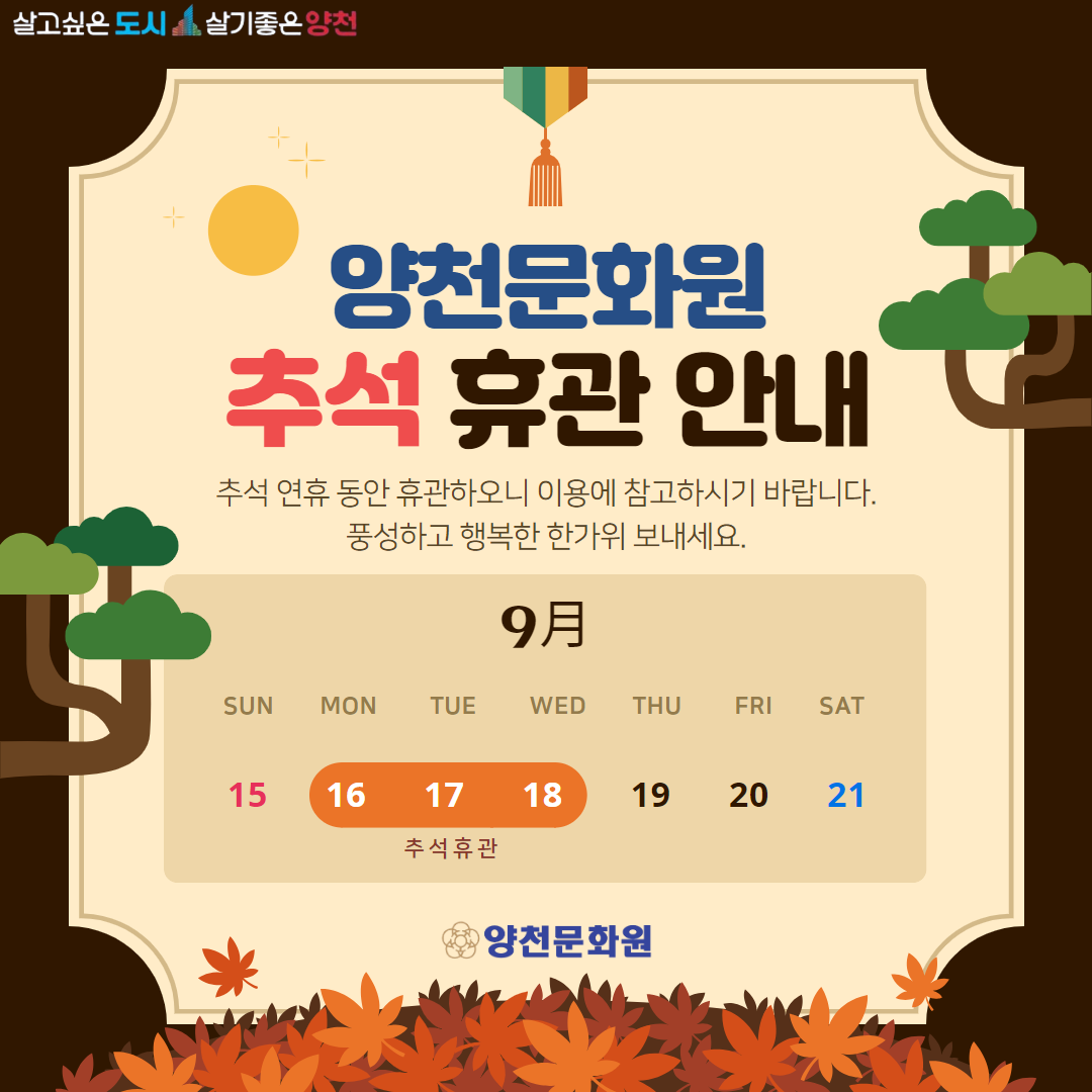 *추석 연휴 동안 양천문화원 휴관합니다.