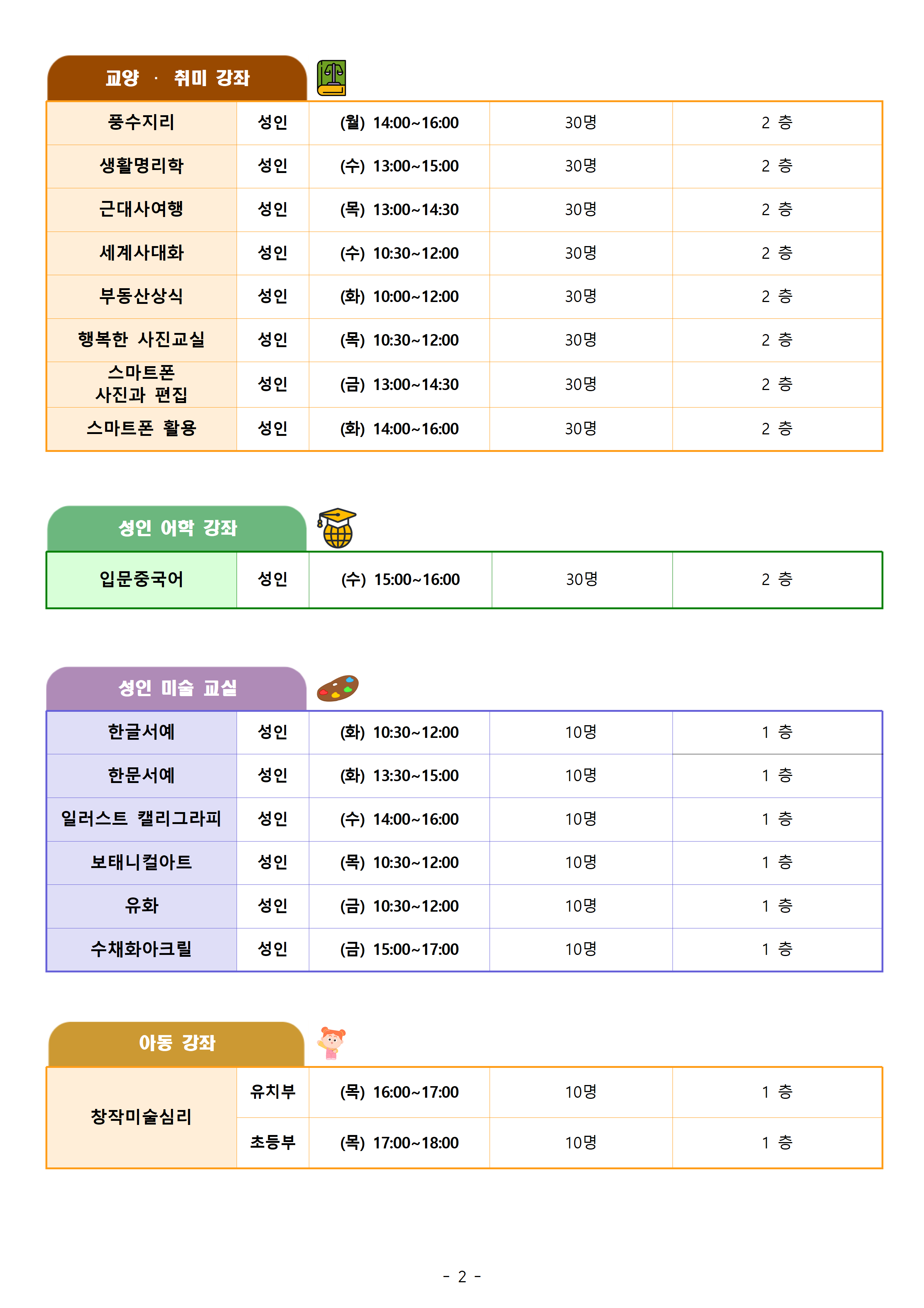 4분기 문화/예술 강좌 수강생을 모집합니다.