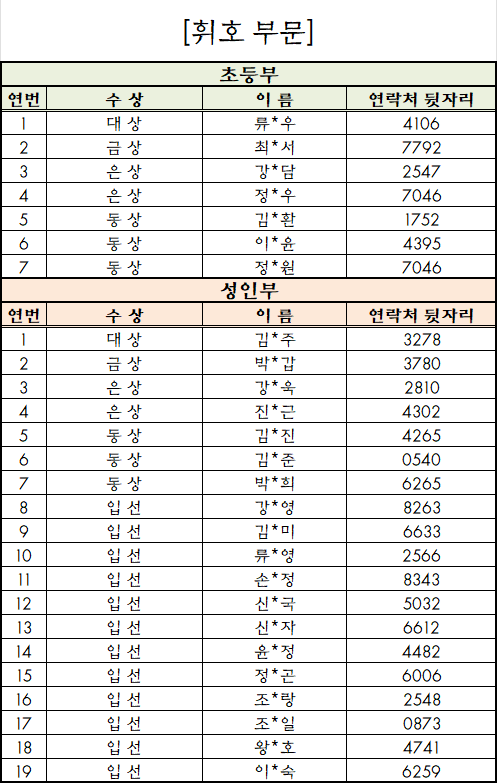 * 수상자 분들께는 시상관련 개별 문자연락 드리겠습니다.
