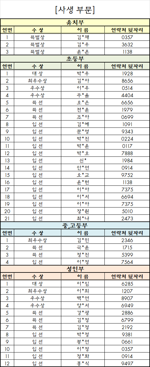 * 수상자 분들께는 시상관련 개별 문자연락 드리겠습니다.