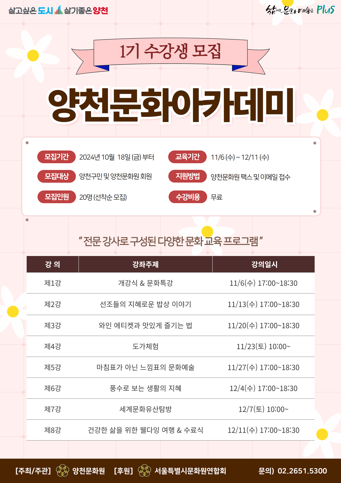 [ 양천문화아카데미 1기 수강생을 모집합니다 ]
