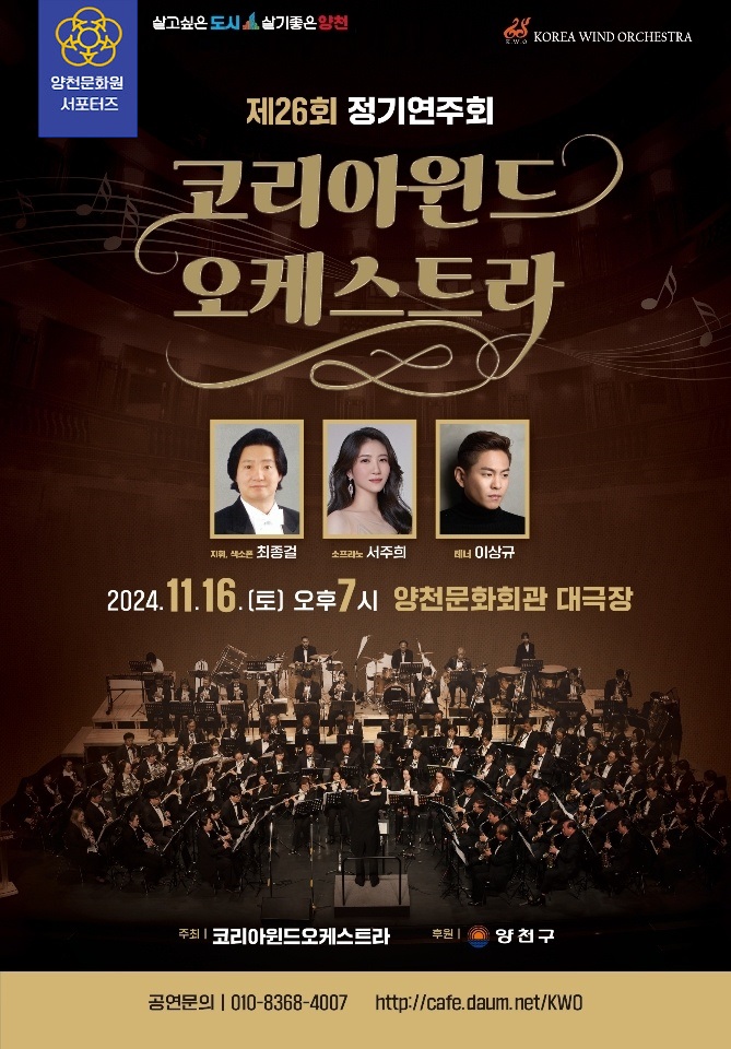 양천문화원 문화서포터즈인 '코리아 윈드 오케스트라'에서 제26회 정기 연주회를 개최 합니다.