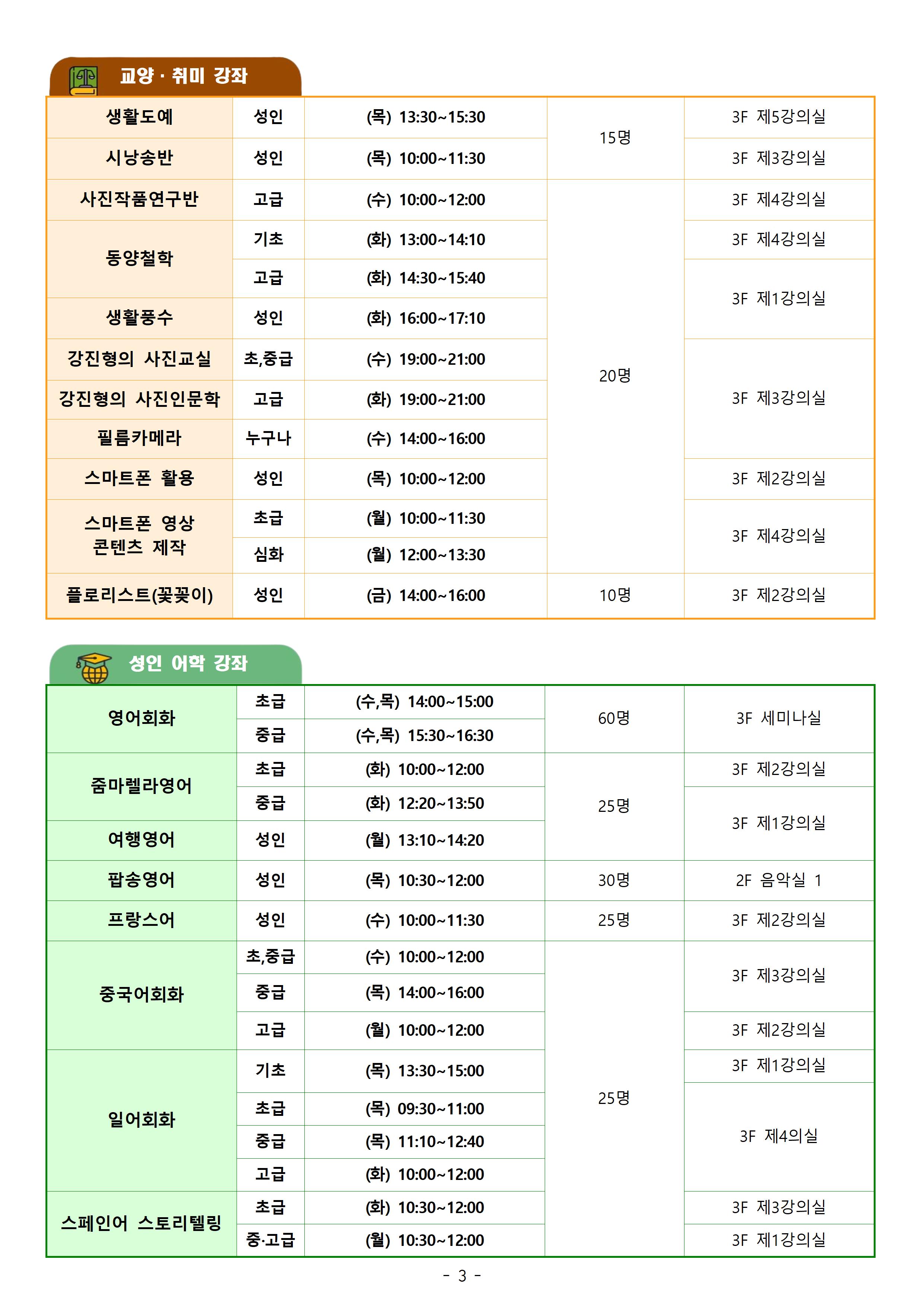 [2025년 1분기(1~3월) 문화대학 수강생 모집]