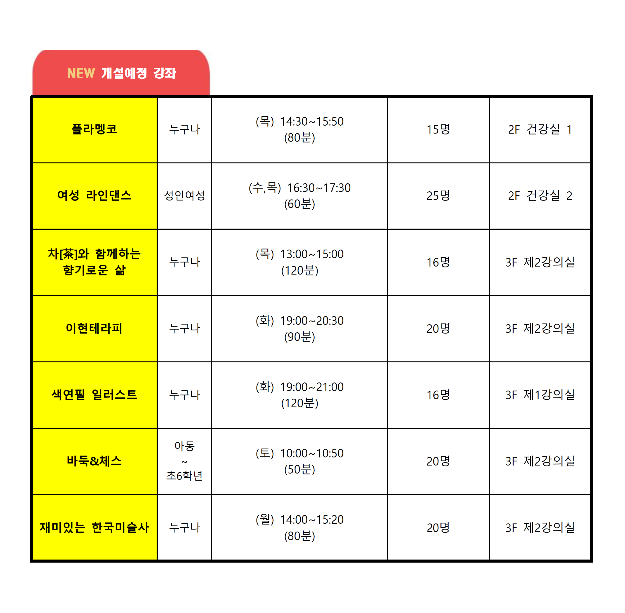 - 신규회원 접수 : 2025. 3. 17.(월) 09:00시 ~ 정원 마감 시까지