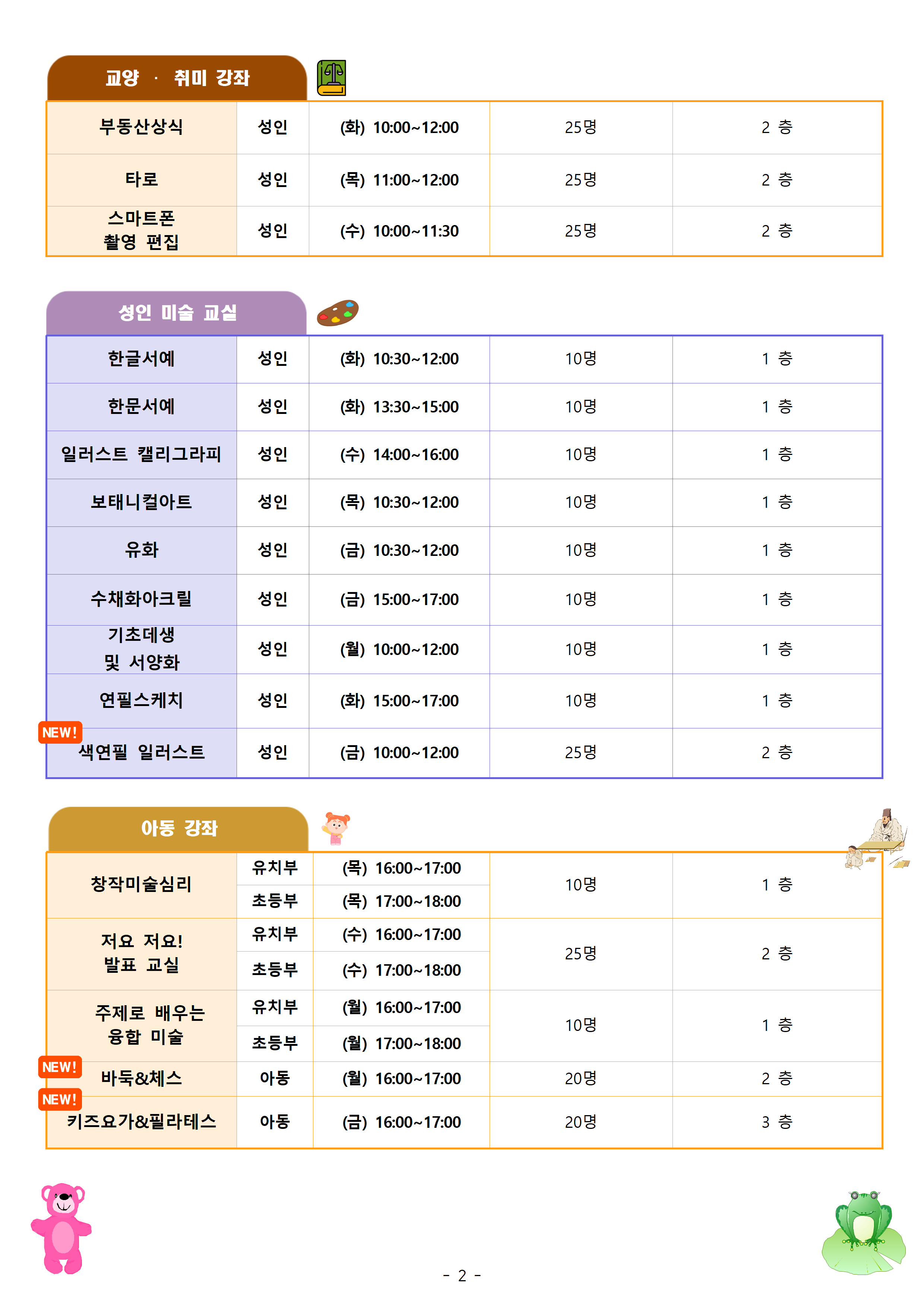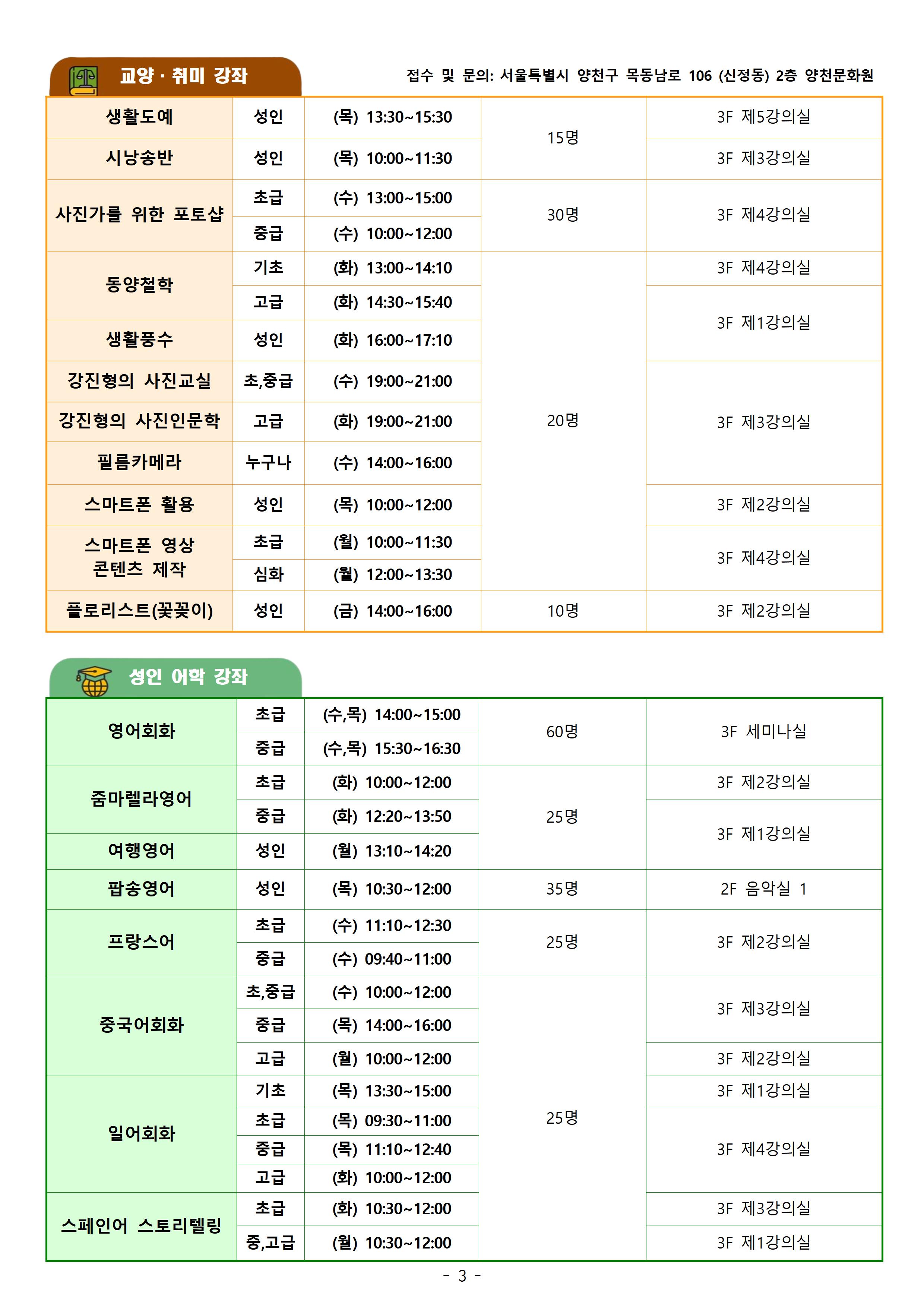 신월문화예술센터 양천문화원 신월캠퍼스 02) 2699-9585