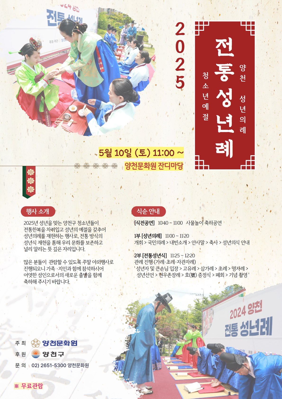 | 2025 양천 전통 성년례 참가자 모집 (0) | 2025.04.14 |