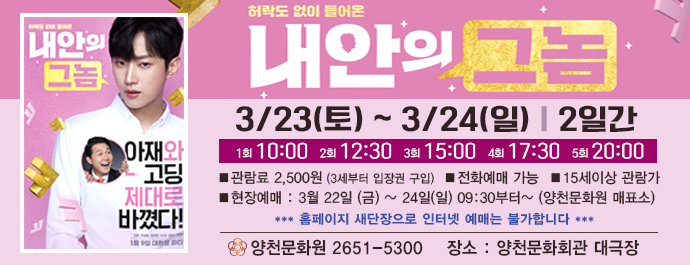 현장예매 : 19년 3월 22일 (금) ~ 24일(일) 9:30부터~ (양천문화원 매표소)