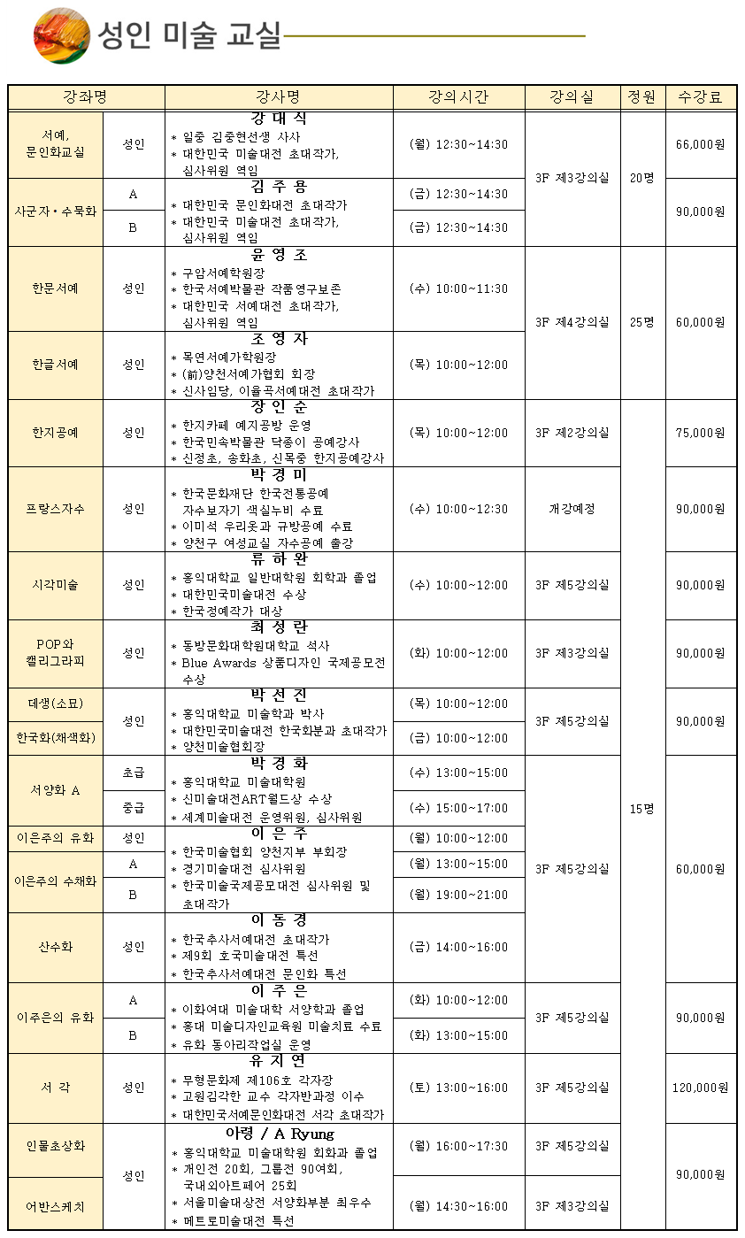 '문화강좌 안내 > 강좌 정보 안내' 카테고리의 다른 글