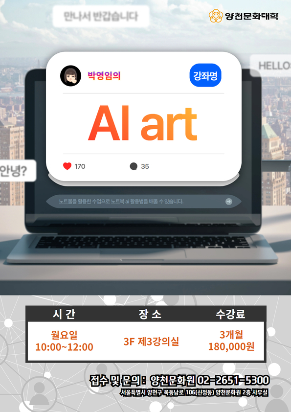 이에 발맞춰 양천문화원 문화대학에서는 AI를 쉽고 흥미롭게 배울 수 있는 신규 강좌 두 가지를 새롭게 개설했습니다!